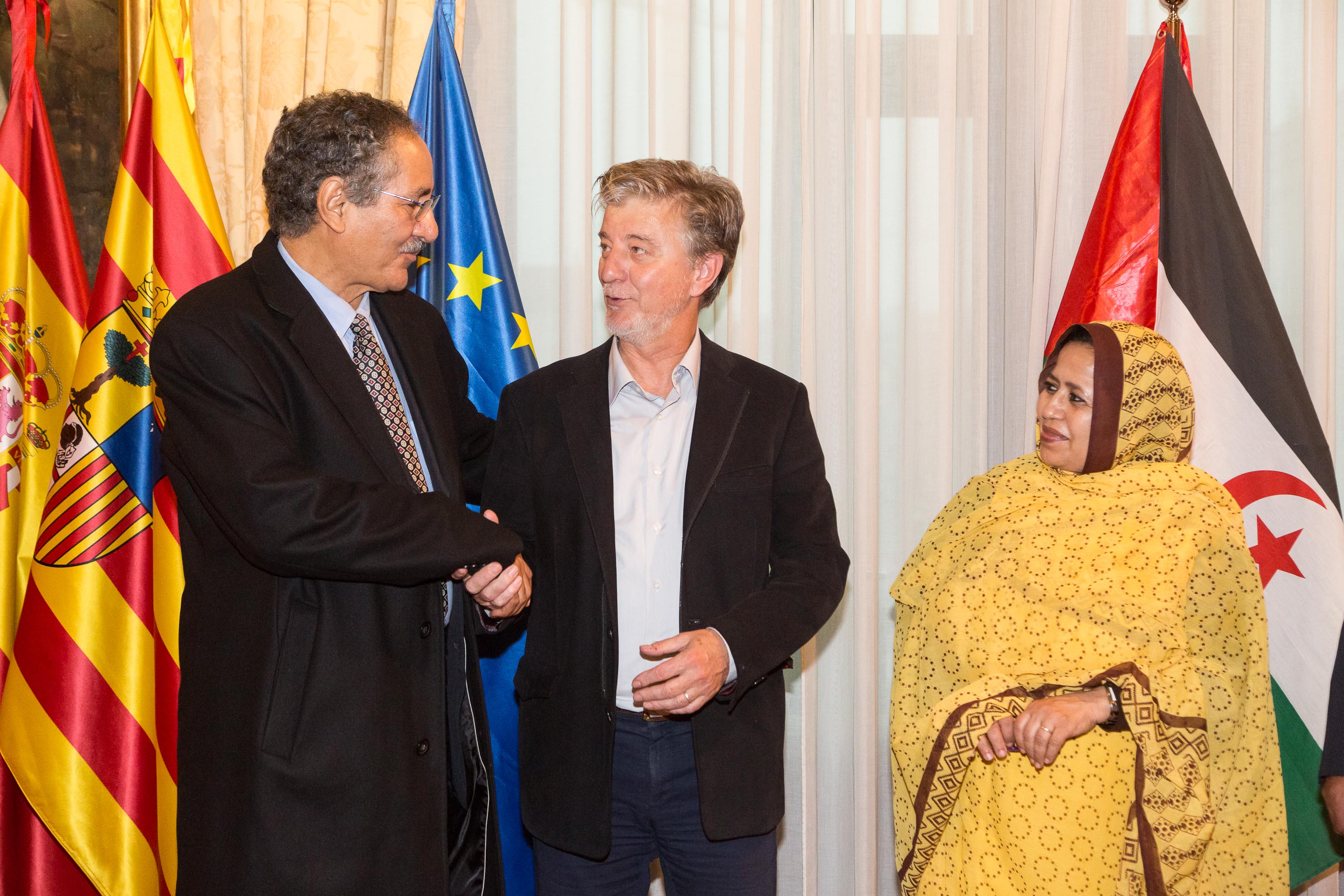 Al encuentro también han asistido el presidente de la Comisión de Exteriores en el Parlamento saharaui, Salek Babouzeid, el delegado saharaui en Aragón, Sidahmed Darbal, y un representante de la Asociación de Amigos del pueblo saharaui Umdraiga y del Observatorio Aragonés para el Sáhara occidental, Enrique Gómez.