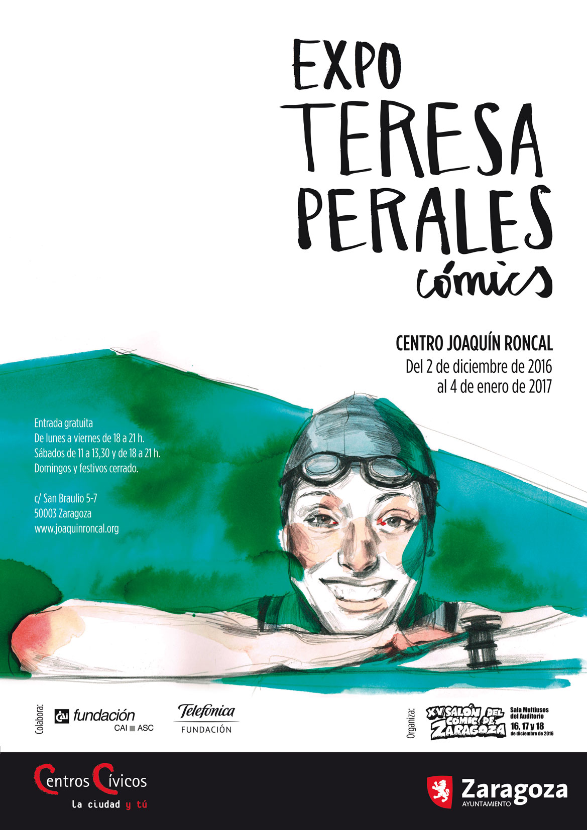 #diciembremesdelcomic tiene también otra cita, a partir de viernes, en el Centro Joaquín Roncal (c/San Braulio, 5-7), que vuelve a colaborar con el Salón del Cómic con la exposición Teresa Perales Cómic. En esta ocasión, la protagonista es nuestra deportista más laureada, ejemplo de superación y éxito desde hace años. Tiene en su palmarés 26 medallas paralímpicas (la deportista nacional con más metales en su currículum), es hija predilecta de Zaragoza y fue pregonera de las Fiestas del Pilar en el 2012, entre otros muchos reconocimientos.