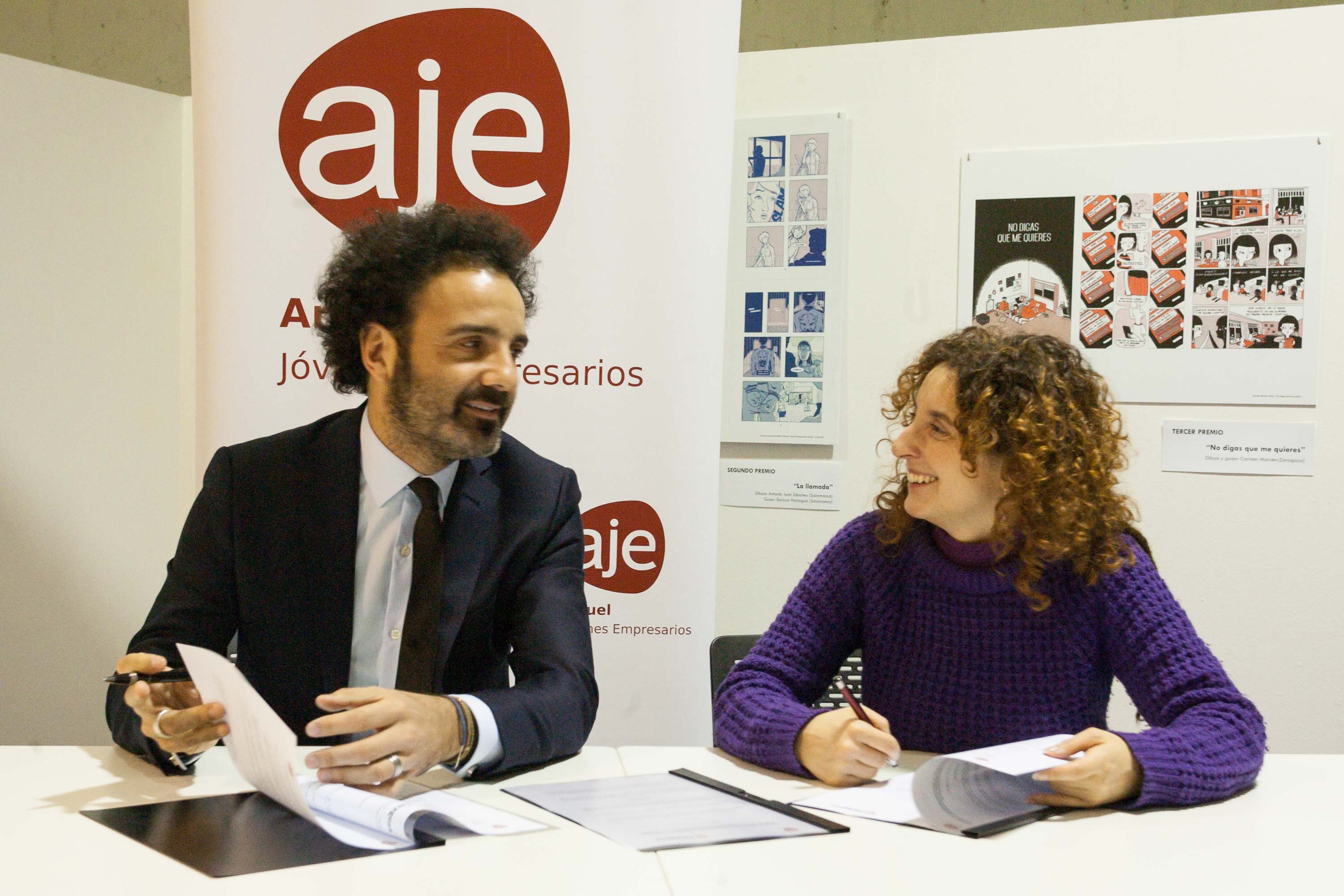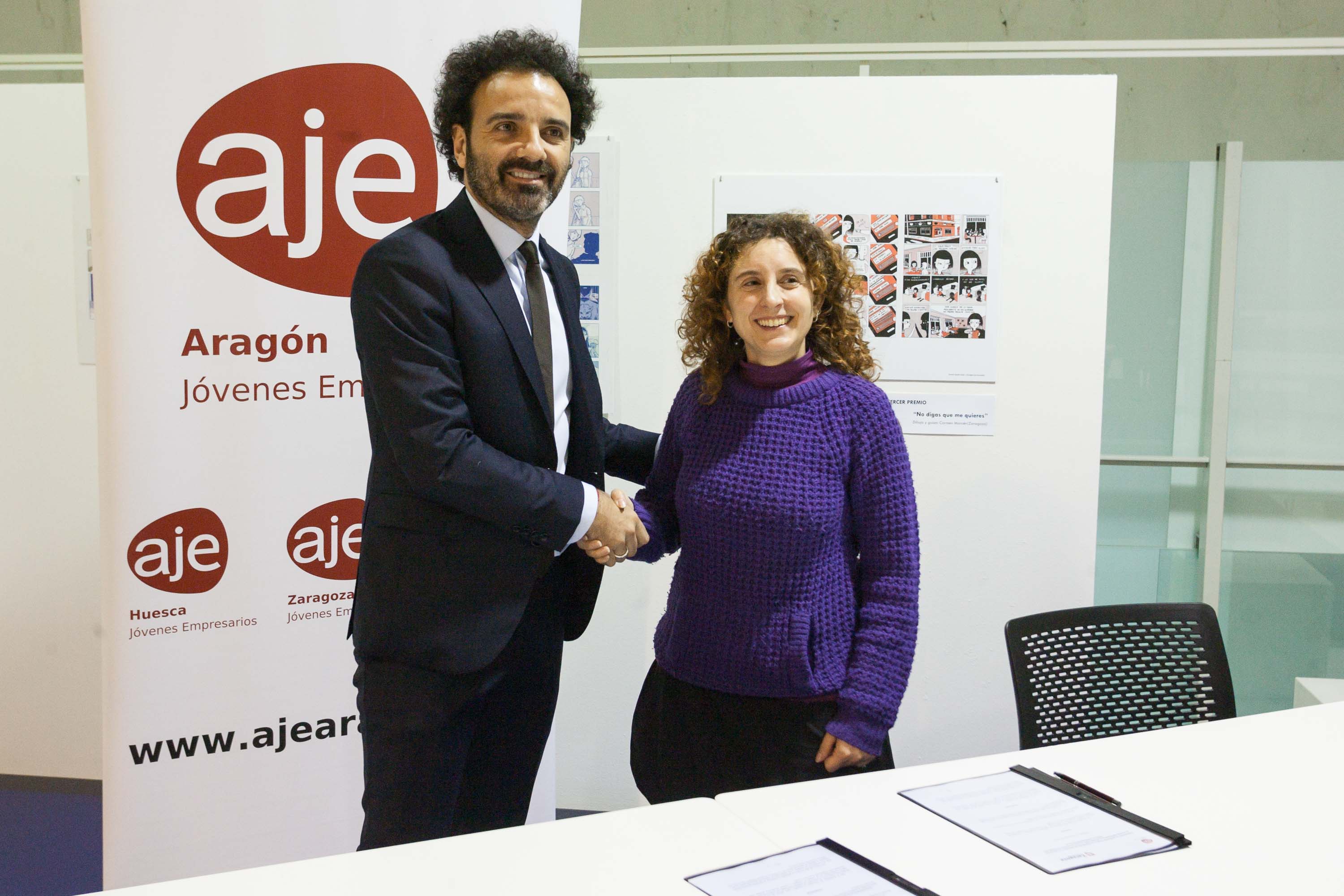 El acuerdo ha sido firmado por la concejala de Educación e Inclusión del Ayuntamiento de Zaragoza, Arantza Gracia, y el presidente de AJE Aragón, Toño Becerril.
