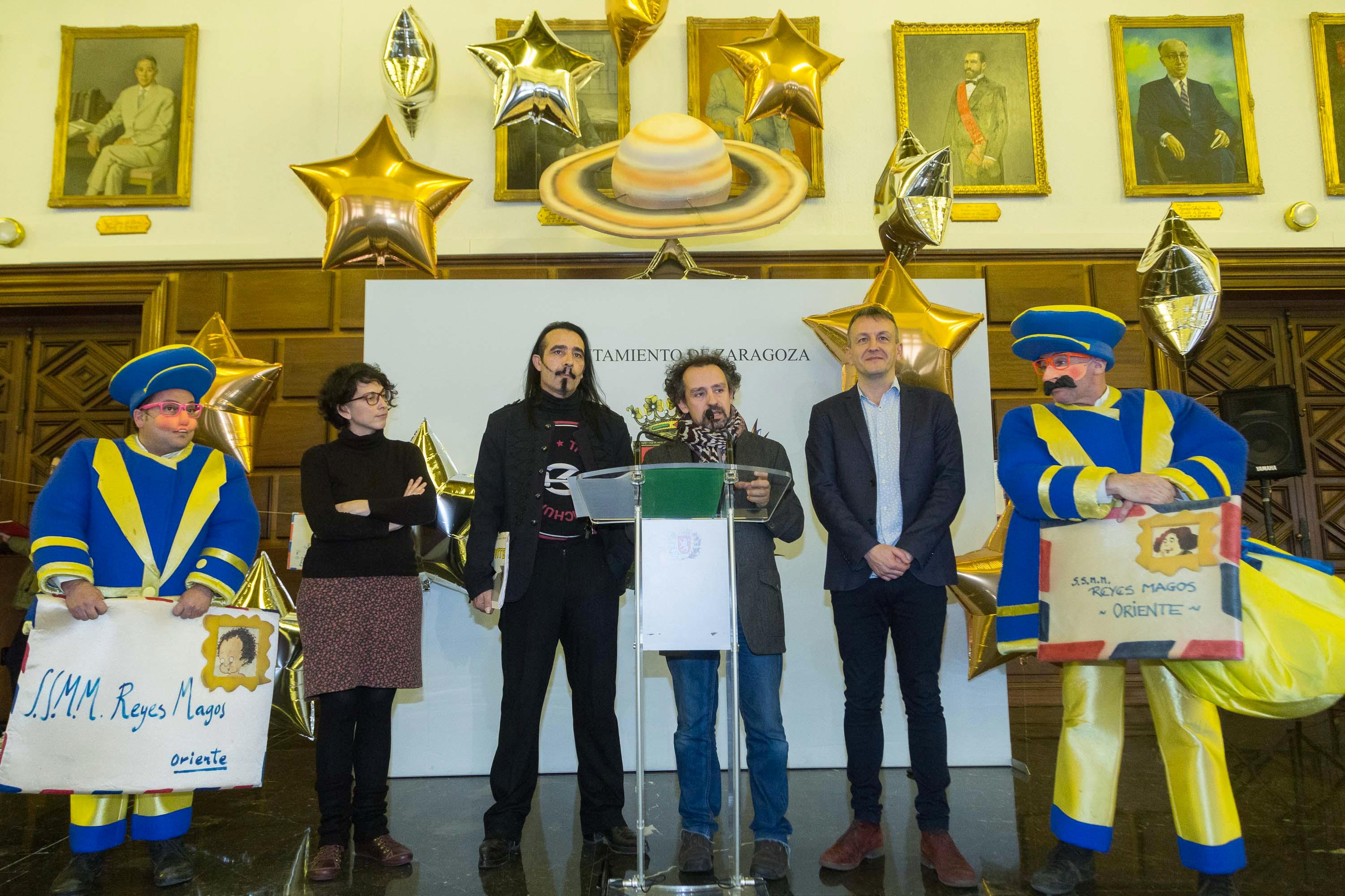 La Cabalgata de Reyes ha vuelto a diseñarse a partir de un modelo participativo y la temática de este año girará en torno a los planetas del Sistema Solar, para convertirse en una cabalgata Interestelar. Las 15 compañías aragonesas de teatro de animación, Almozandia, Binomio, Caleidoscopio Teatro, Callejeatro, Cirteani, Coscorrón Banda de Animación, K De Calle Teatro, Norabola, Nostraxladamus, Pai, Tarde o Temprano Danza, Teatro Imaginario, Teatro Indigesto, Zarakatraka y Zootropo Teatro, junto con las asociaciones Pares Sueltos, Patinadores, Danza Bolliwood, Breakers/Parkour y Basket Weelchair, se sumergerán en el mundo de los planetas, los deseos y las estrellas para el disfrute de los más pequeños.
