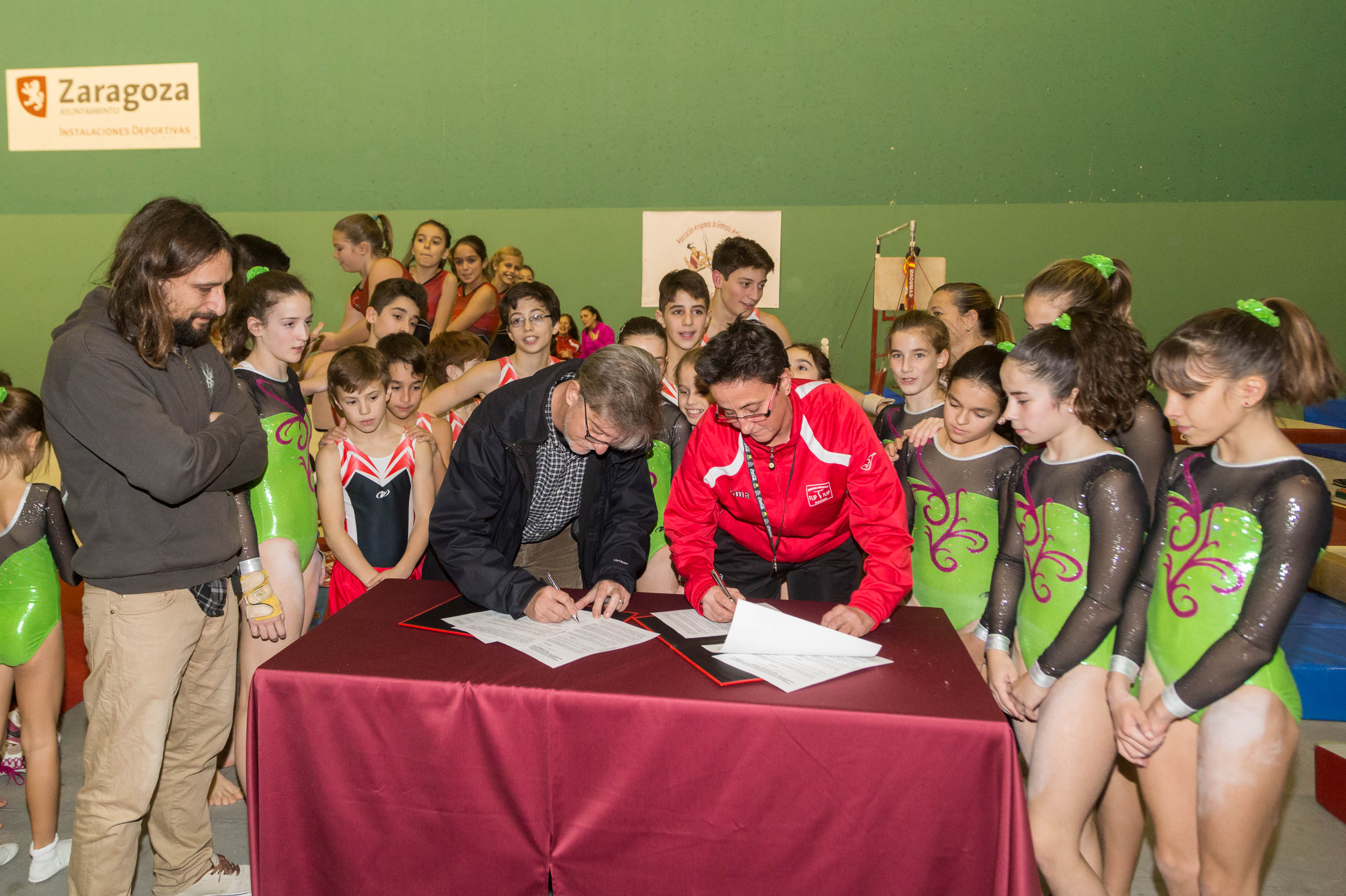 El Ayuntamiento de Zaragoza cederá el uso preferente del frontón del CDM José Garcés a la A.D. Flip-Flap, el club de referencia en gimnasia artística de la ciudad. El alcalde de Zaragoza, Pedro Santisteve, y el concejal de Deporte, Pablo Híjar, han materializado hoy la cesión mediante la firma de un convenio con este club, en un acto que se ha celebrado en el propio pabellón con la presencia de decenas de gimnastas de todas las edades, familiares y aficionados.