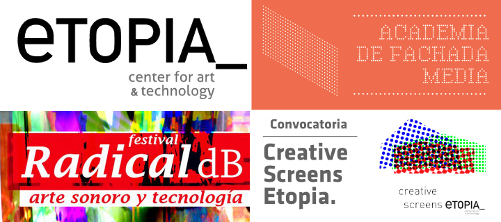 La doble Fachada Media de Etopia es el soporte de trabajo propuesto por la Fundación Zaragoza Ciudad del Conocimiento en las dos convocatorias que ha lanzado en este mes de diciembre. La primera de ellas, Academia de Fachada Media, está dirigida a artistas, profesionales o estudiantes relacionados/as con las formas audiovisuales, que deseen adquirir conocimientos del uso de la fachada media del Centro de Arte y Tecnología con el objetivo de concebir y desarrollar una obra inédita que se exhibirá en la misma.