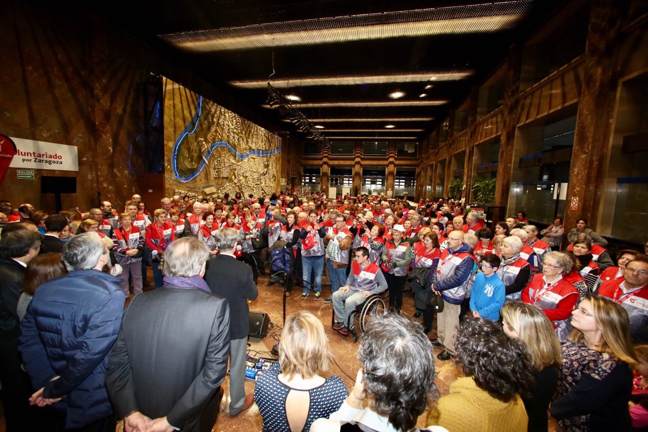 Como cada año, el alcalde y miembros de la Corporación han celebrado la festividad con cientos de voluntarios del cuerpo municipal en el hall, junto a la maqueta de la ciudad que se exhibió durante la Expo 2008. Santisteve ha agradecido a los miembros del Voluntariado, actualmente con más de 3.300 personas, por su gran colaboración en los diferentes eventos y actividades que se desarrollan en Zaragoza.