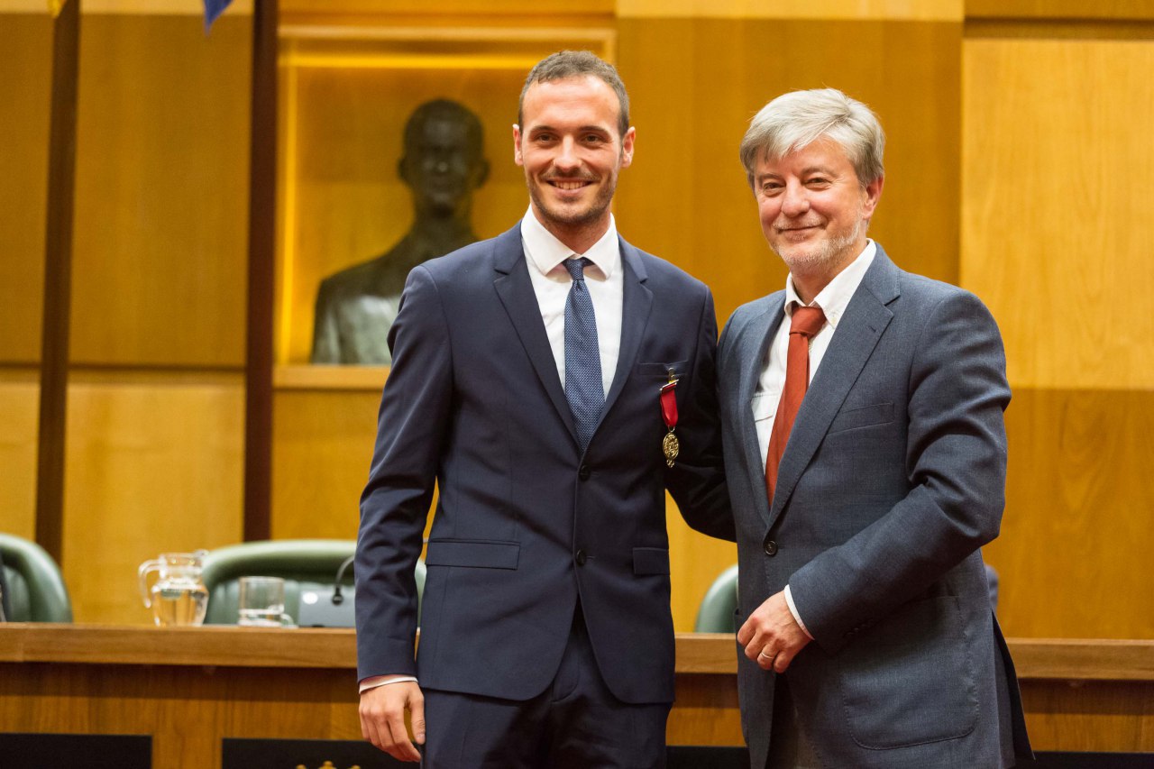 Toni Abadía ha sido condecorado con la Medalla al Mérito Deportivo Ciudad de Zaragoza, en la Gala de Deporte 2016 que se ha celebrado esta tarde en el Ayuntamiento de Zaragoza con la presencia de unas 120 personas de las diferentes federaciones y clubes deportivos. El atleta zaragozano ha recibido la máxima distinción deportiva de la ciudad de manos del alcalde Pedro Santisteve, por su brillante palmarés a nivel nacional e internacional, y particularmente por sus méritos durante el último año, con su debut en los Juegos Olímpicos de Río de Janeiro.
