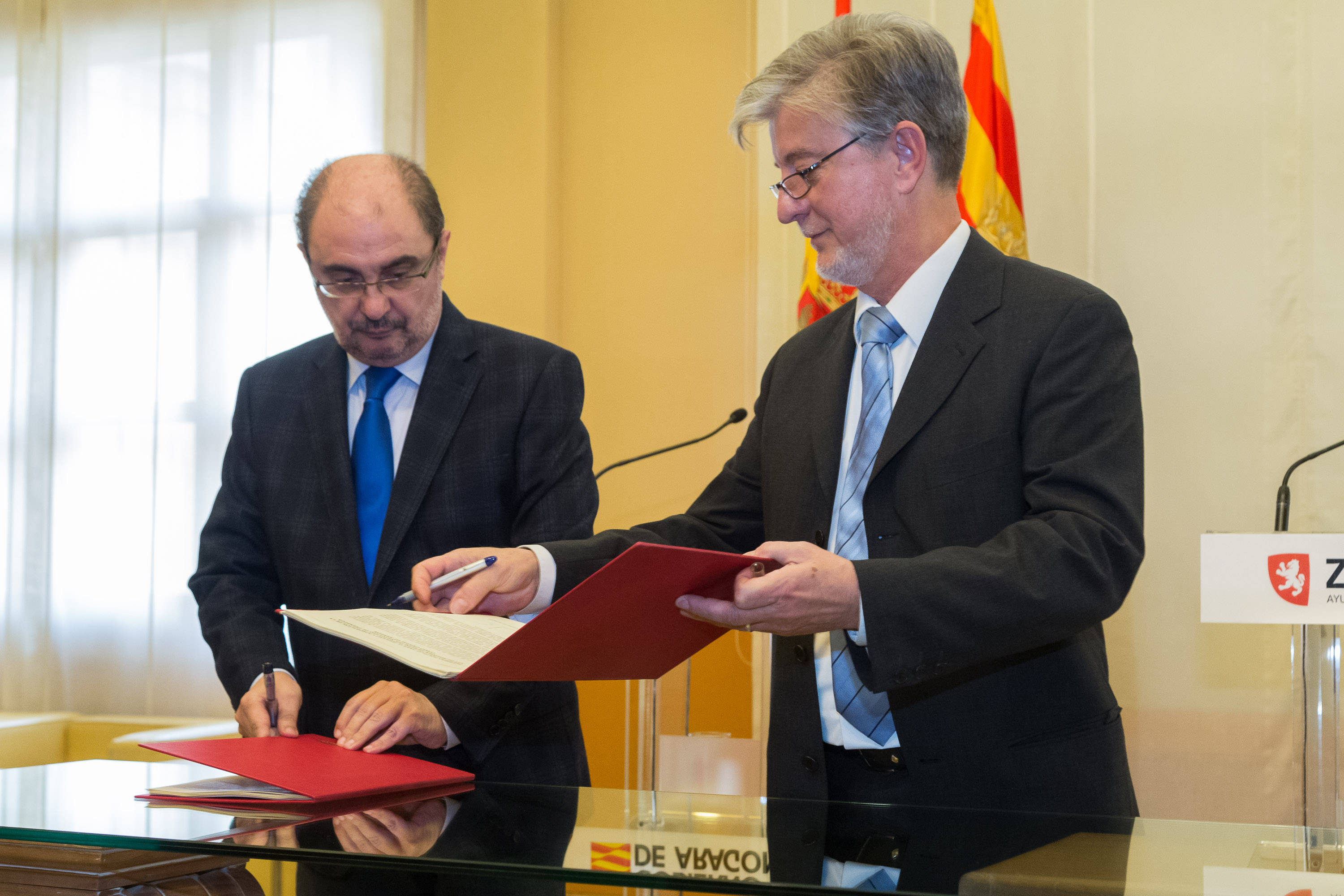 El Alcalde de Zaragoza, Pedro Santisteve y el Presidente de Aragón, Javier Lambán han firmado hoy un acuerdo político para impulsar y aprobar la Ley de Régimen Especial del Municipio de Zaragoza como capital de Aragón, conocida como Ley de Capitalidad.