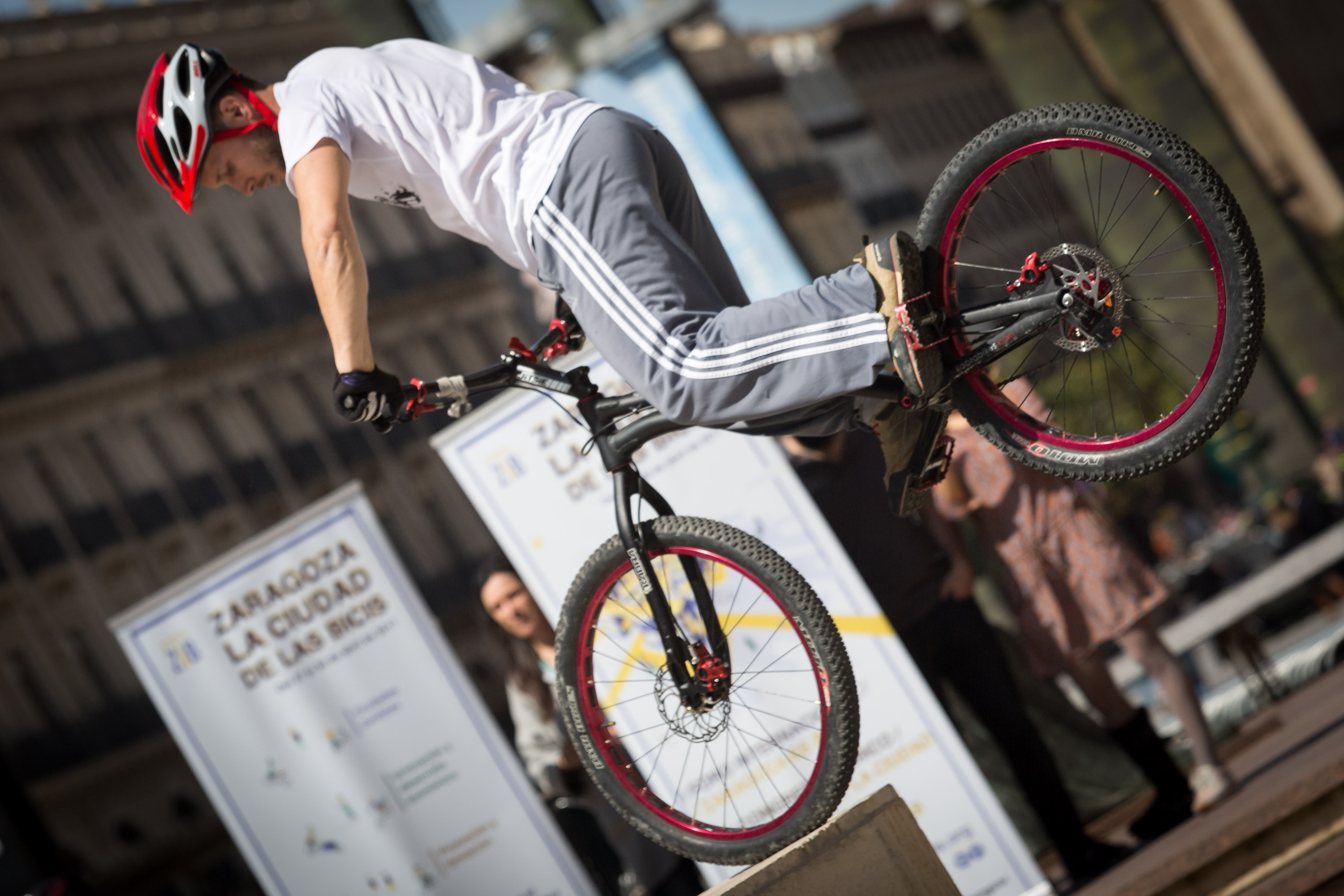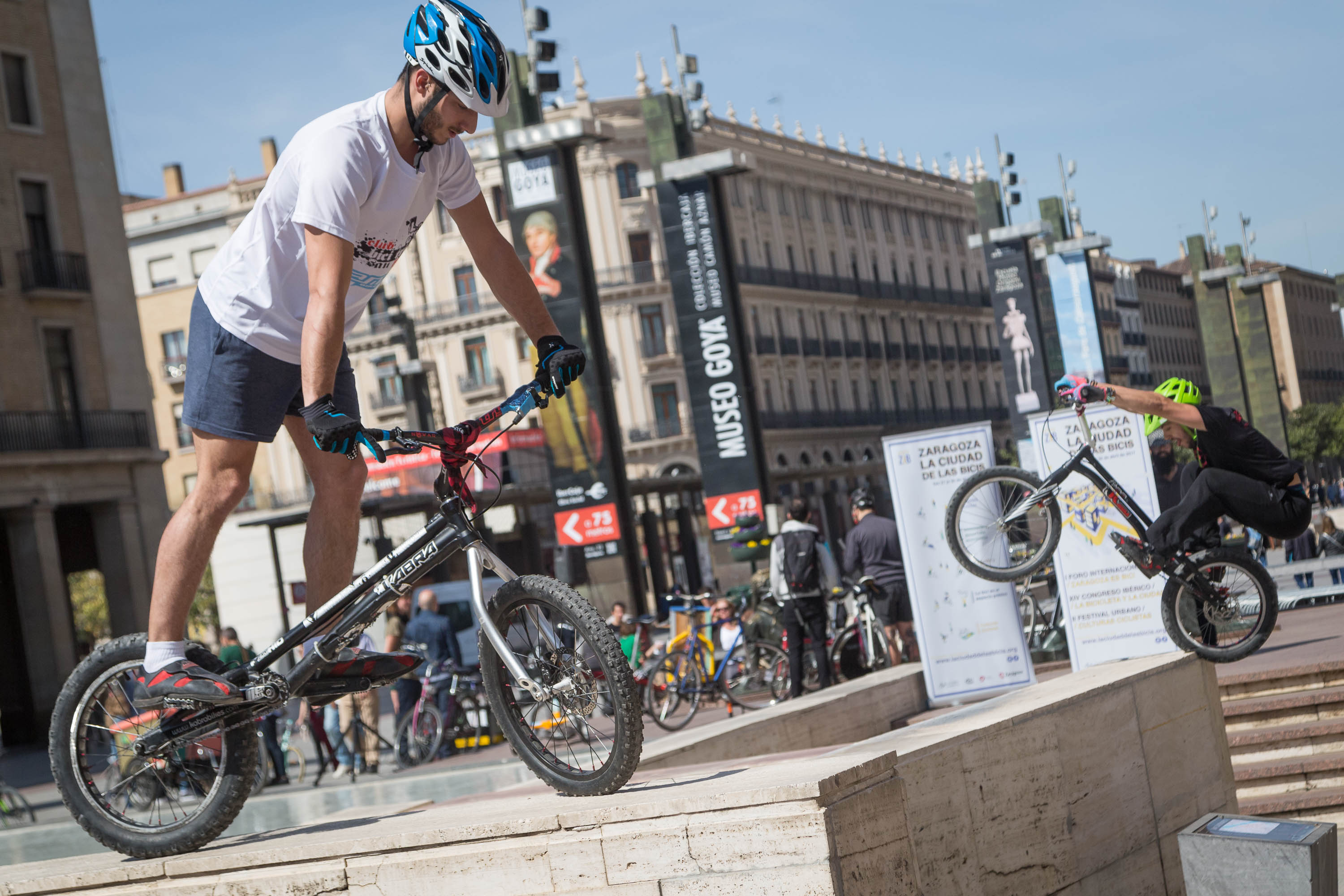 La plaza del Pilar ha acogido la presentación del congreso La Ciudad de las Bicis, un evento organizado por diversos colectivos ciclistas, en colaboración con el Ayuntamiento de Zaragoza. El acto ha reunido una variada muestra de ciclistas con sus respectivas bicis, así como una demostración de bici trial a cargo del equipo Kabra Bikes.