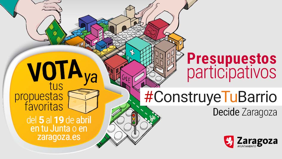 Los Presupuestos Participativos 2017 inician mañana miércoles una nueva fase, la de votación final. Del 5 al 19 de abril, los vecinos y vecinas de los distritos urbanos de Zaragoza podrán votar sus propuestas favoritas de entre las que hayan superado el filtro técnico y económico. Como en fases anteriores, se recuerda que pueden votar todas las personas empadronadas en algún distrito de la ciudad y que tengan más de 14 años.