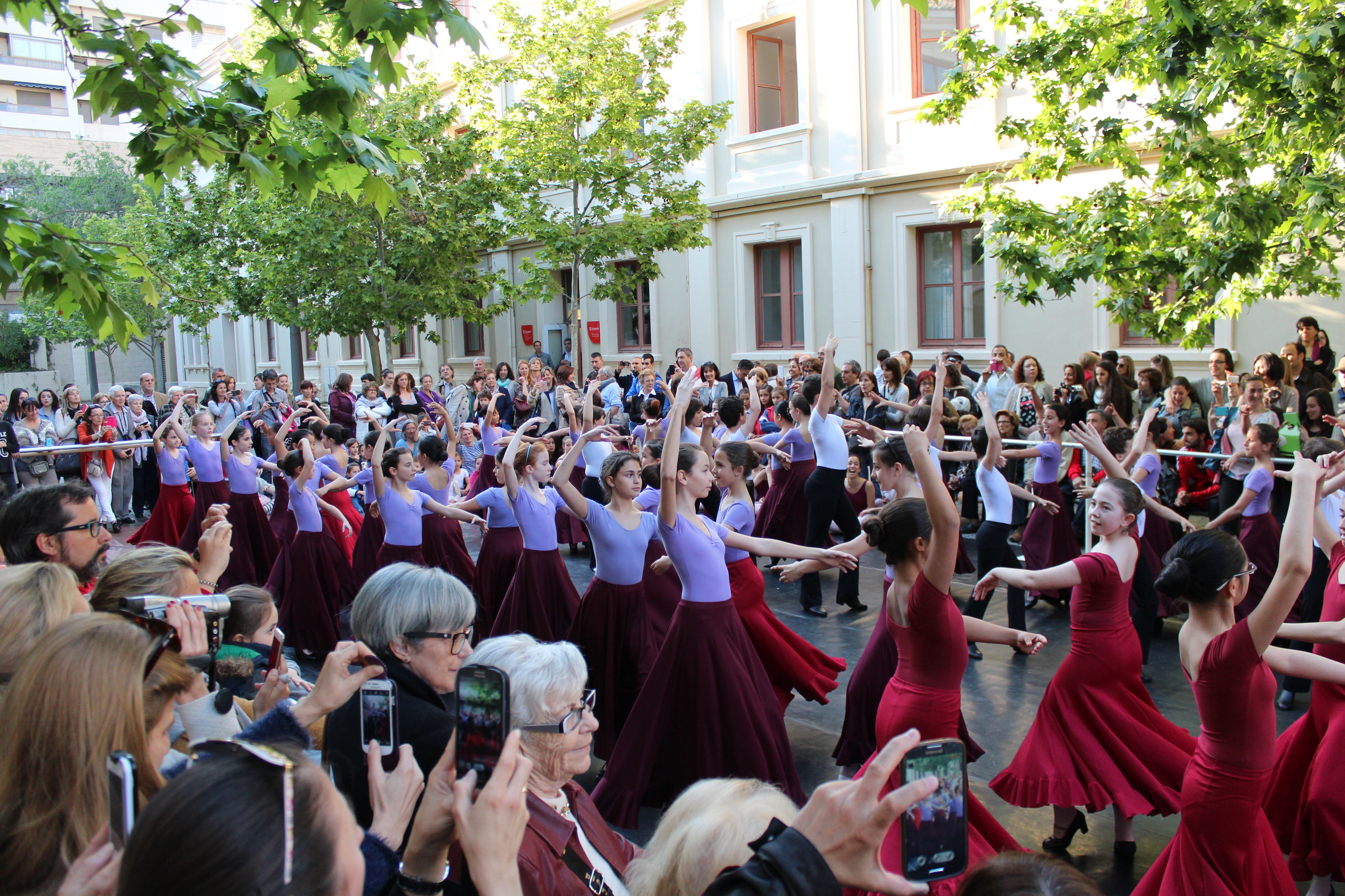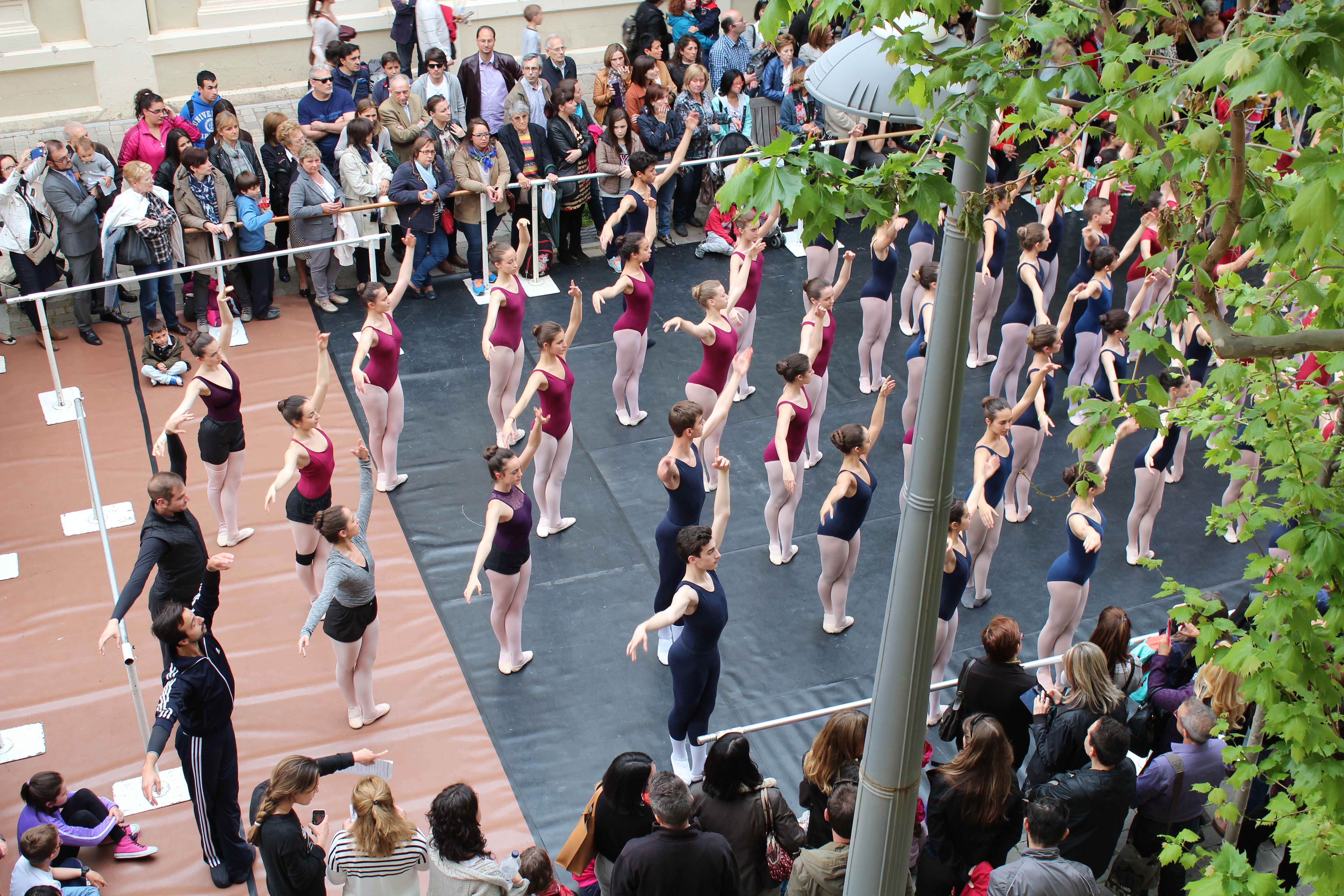 Unos 165 alumnos y alumnas del Conservatorio Municipal Profesional de Danza de Zaragoza, con edades comprendidas entre los 8 y los 18 años, exhiben este viernes su talento en el patio del antiguo cuartel Palafox, en al calle Domingo Miral número 3. Esta actividad se enmarca en la celebración del Día Internacional de la Danza y supone un adelanto al espectáculo que este sábado se trasladará al Paseo de la Independencia.