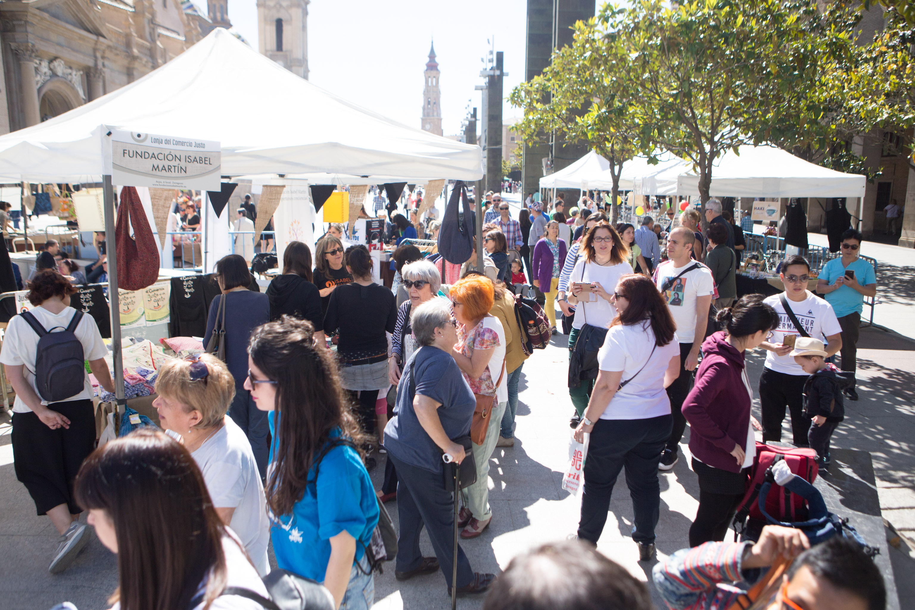 A lo largo de todo el día, están abiertos al público los stands de las distintas organizaciones, colectivos y comercios que en nuestra ciudad ofrecen productos de comercio justo y trabajan por una mayor responsabilidad y justicia social promoviendo el consumo de este tipo de productos. Hay que recordar que Zaragoza recibió la pasada semana el título de "Ciudad por el Comercio Justo", que reconoce su labor en la difusión y promoción de esta actividad económica, que promueve  este tipo de intercambio y de consumo responsable y equilirado entre el productor y el consumidor.