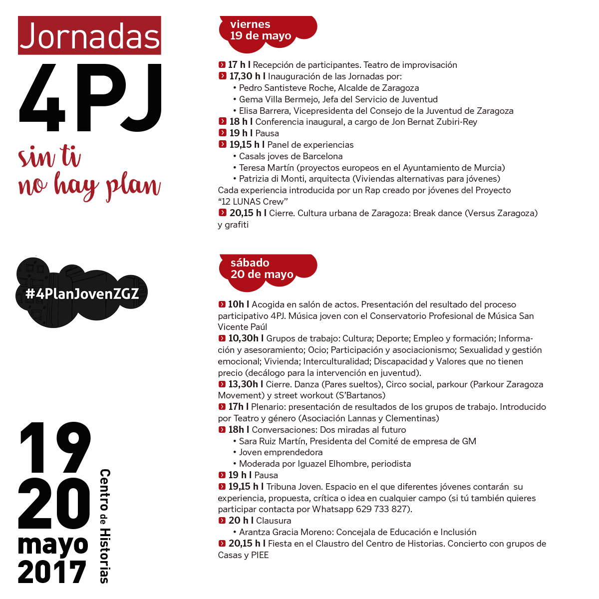 A las 19,15 horas el protagonismo será para los y las jóvenes de Zaragoza, en la denominada Tribuna Joven, donde 7 jóvenes o grupos expondrán su historia o proyecto.