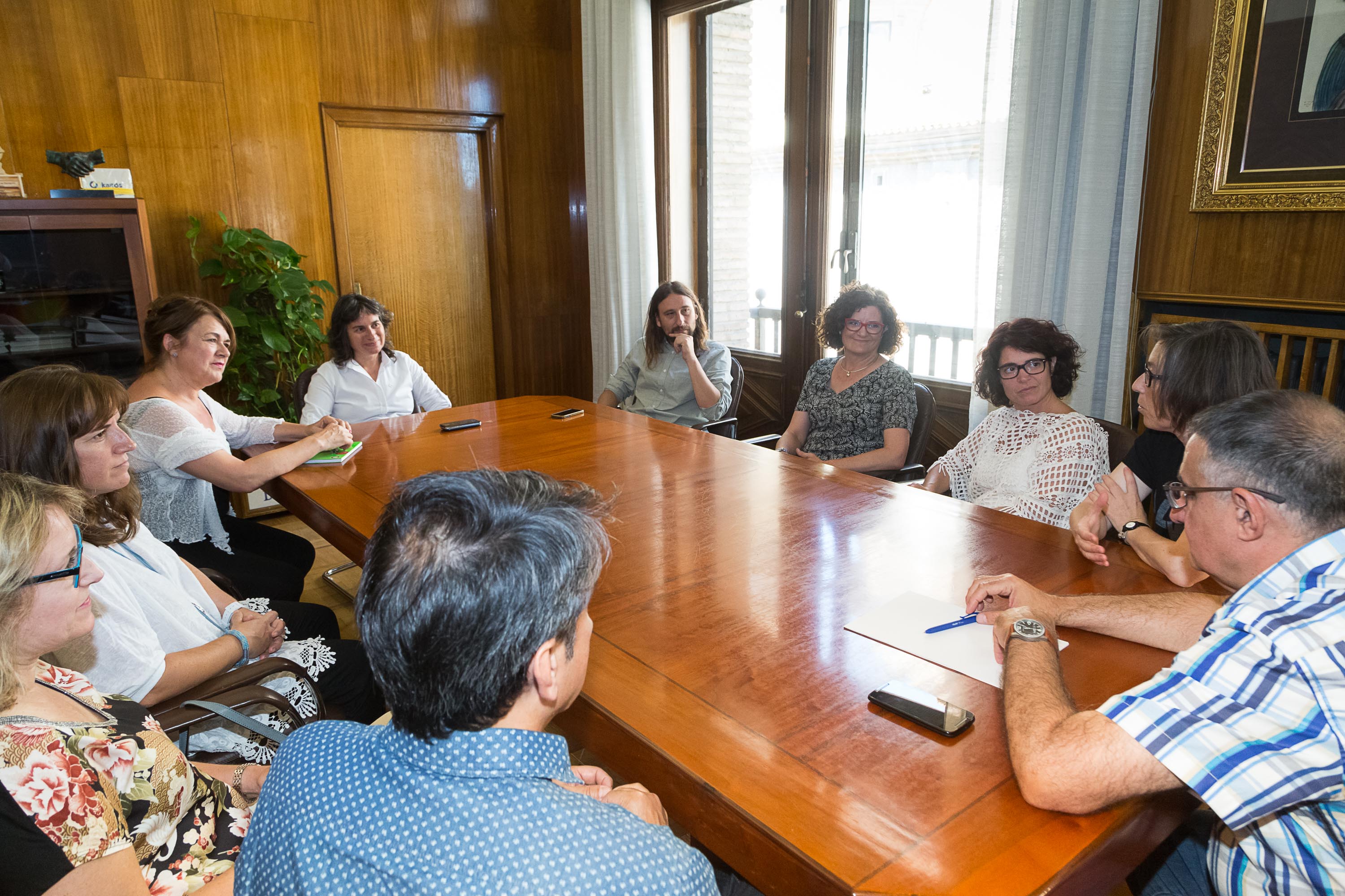 La vicealcaldesa y consejera de Derechos Sociales, Luisa Broto, el concejal de Vivienda, Pablo Híjar, y representantes de la sociedad municipal Zaragoza Vivienda, han recibido hoy a la teniente de alcalde de Derechos Sociales y Servicios a las Personas y regidora de Vivienda y Mediación Comunitaria del Ayuntamiento de Tarrasa, Lluïsa Melgares, que ha viajado a la capital aragonesa acompañada por técnicos municipales de su Consistorio para conocer el trabajo en materia de vivienda del Ayuntamiento de Zaragoza.