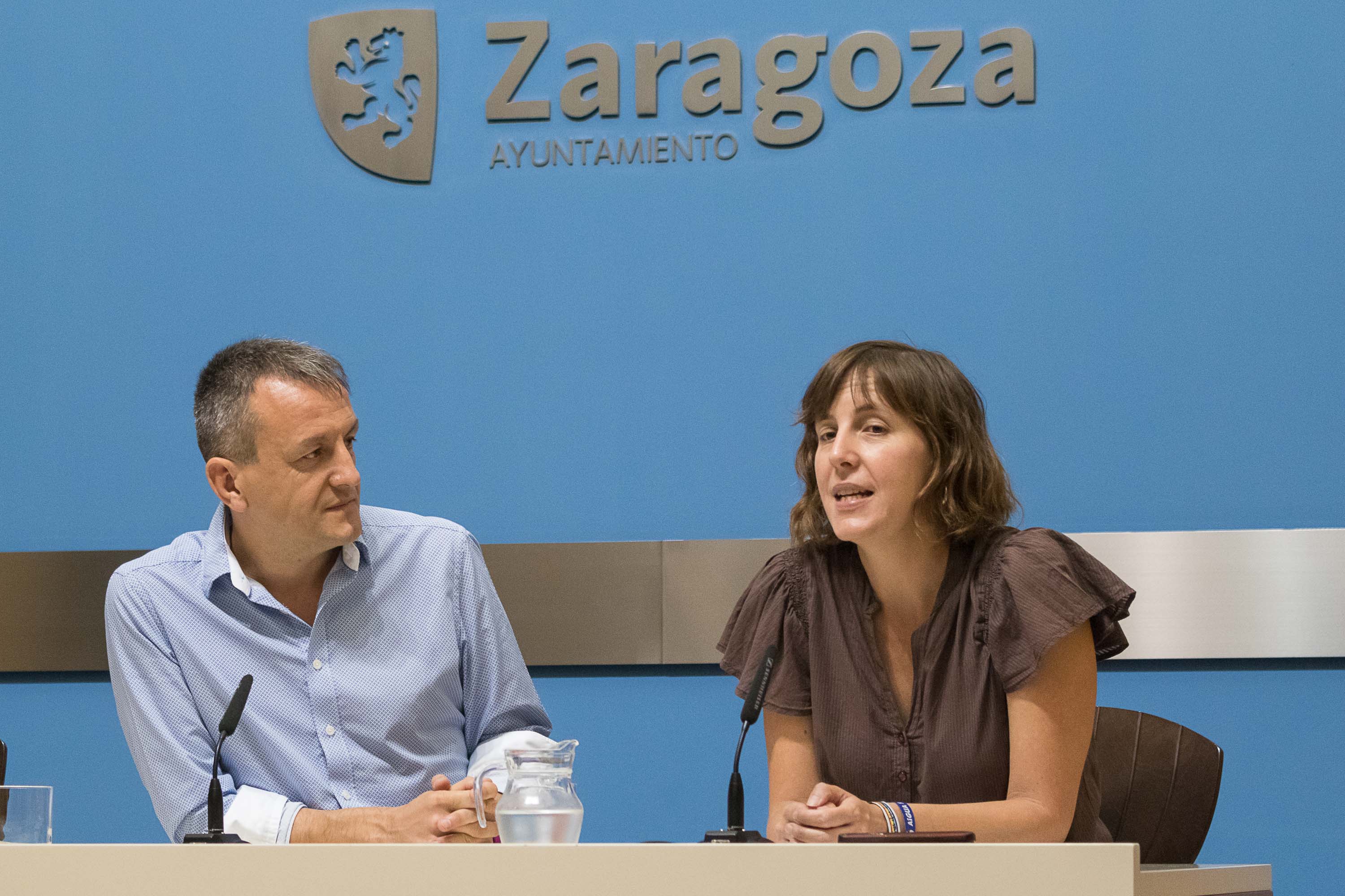 Fernando Rivarés y Teresa Artigas en la rueda de prensa posterior al Gobierno de Zaragoza