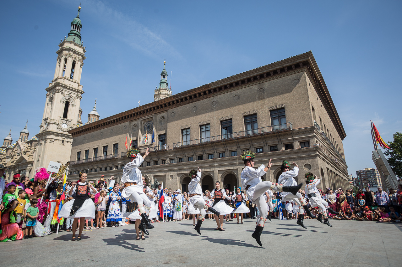 Las actividades del EIFOLK 2017 comenzarán el miércoles, 30 de agosto, con el desfile de los grupos participantes por la Calle Alfonso I y la Plaza del Pilar, donde se celebrará el tradicional izado de banderas, la recepción en el Ayuntamiento y la ofrenda de flores, como símbolo de paz, a la Virgen del Pilar.