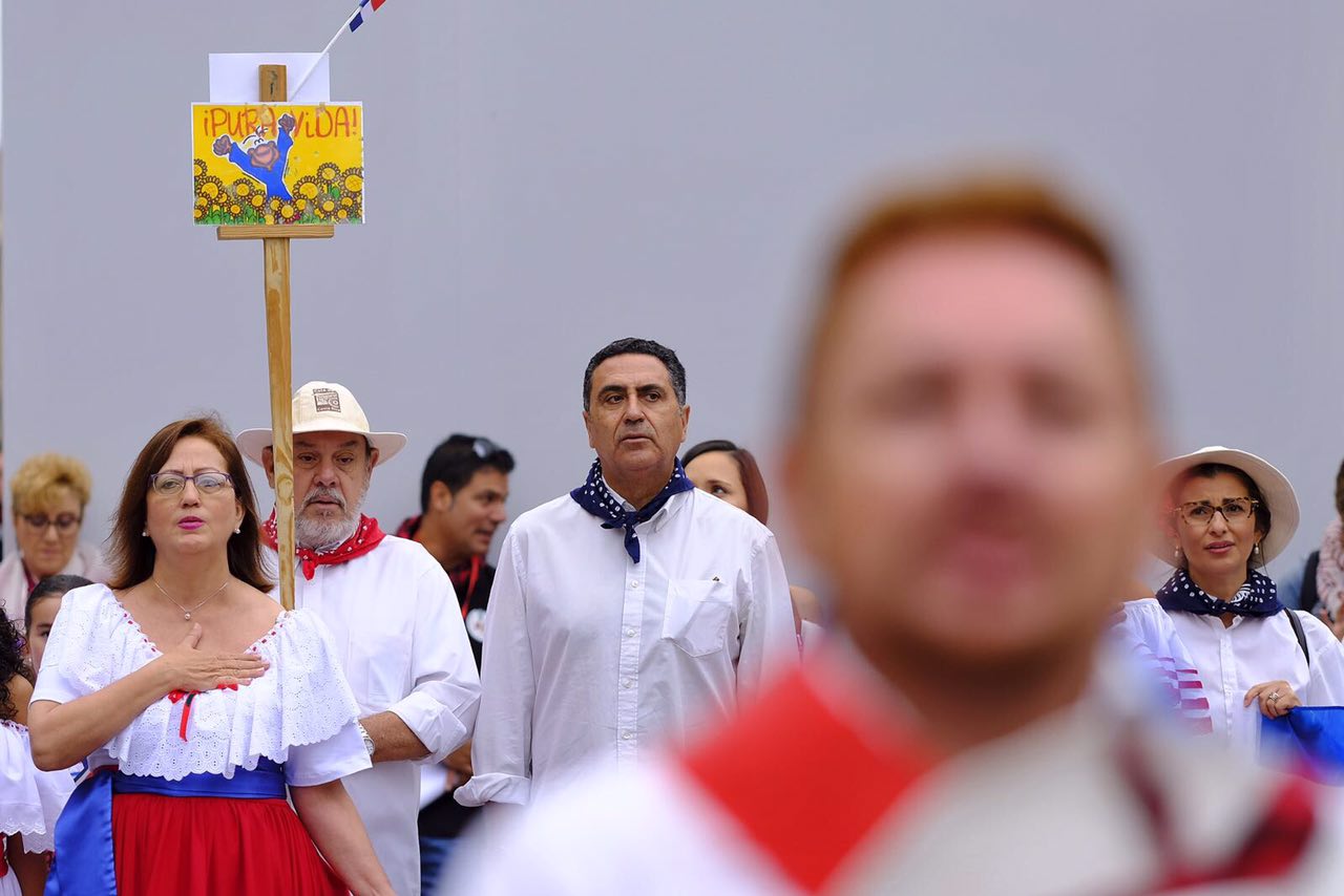 La Cruz de Lorena luce ya sobre el manto blanco de la Virgen del Pilar. Los jardineros municipales la colocaban a las diez y media de la mañana y media hora después realizaba su ofrenda Costa Rica, país invitado este año. Su delegación ha estado encabezada por su embajadora en España y el cónsul en Zaragoza.