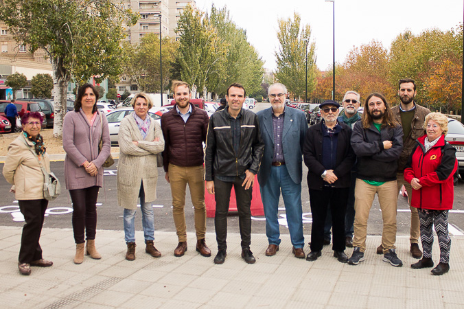 El consejero de Urbanismo y Sostenibilidad, Pablo Muñoz, el presidente de la Junta de Distrito ACTUR - Rey Fernando, Pablo Hijar, y las concejalas Lola Ranera y Leticia Crespo han asistido esta mañana a la puesta en servicio del nuevo estacionamiento en superficie que se ha construido en la calle Valero Ripol Urbano, junto al parque Roberto Camardiel y la urbanización Kasán.