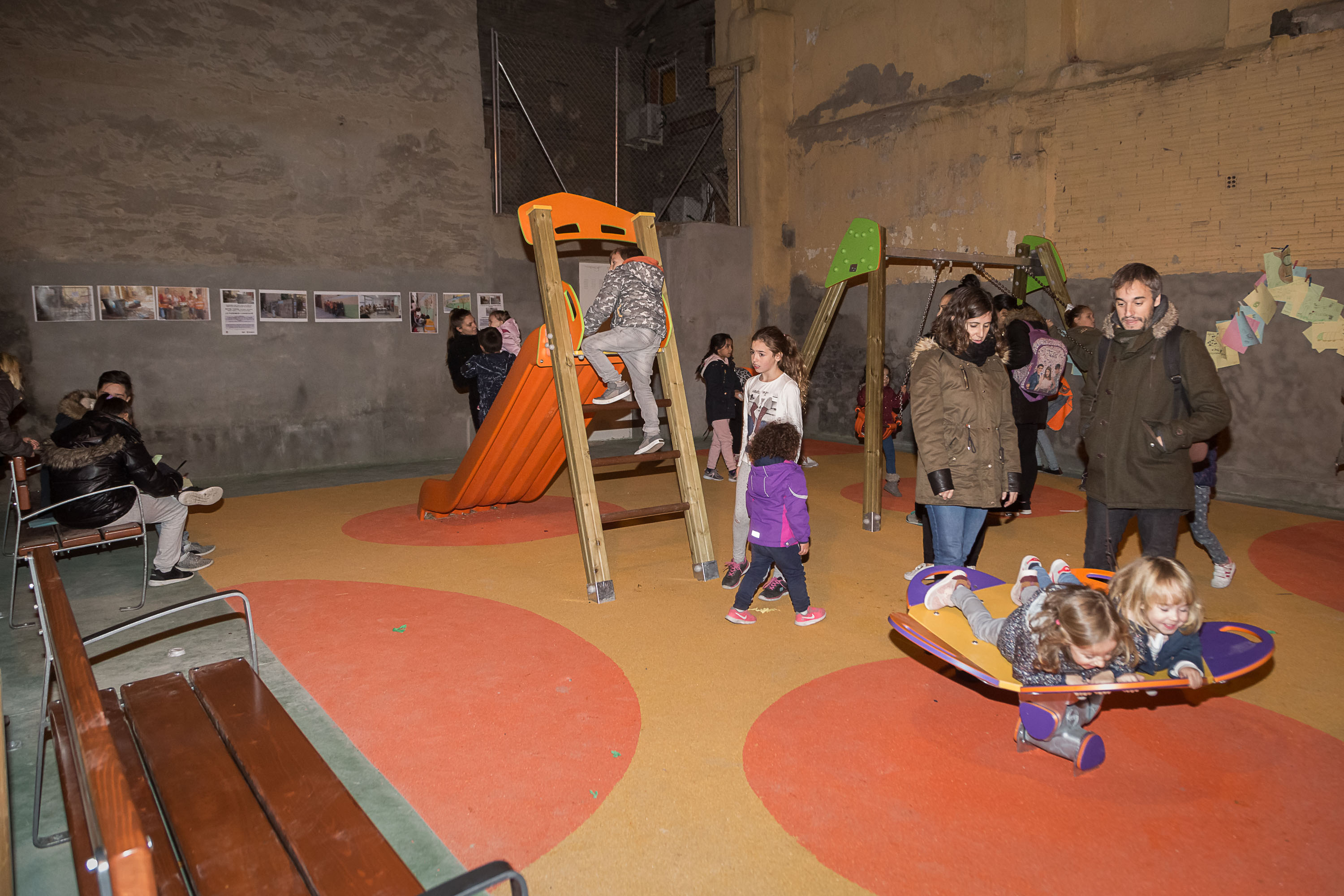 Concretamente, en la actuación se han invertido 18.766,54 euros, y las obras las ha llevado a cabo la empresa Inserta Ozanam, con lo que esta intervención ha tenido un plus de valor social, dadas las características del personal que las ha llevado a cabo. En una parte del solar se ha instalado un suelo de caucho continuo amortiguado, sobre el que se ubican 1 tobogán, 1 columpio doble(de cuna y tablero), 1 balancín y 4 bancos, y en el resto se ha instalado hormigón fratasado con terminación eln color verde. También se ha procedido al jarreado de las paredes colindantes al solar, para dignificar y mejorar estéticamente todo el espacio.