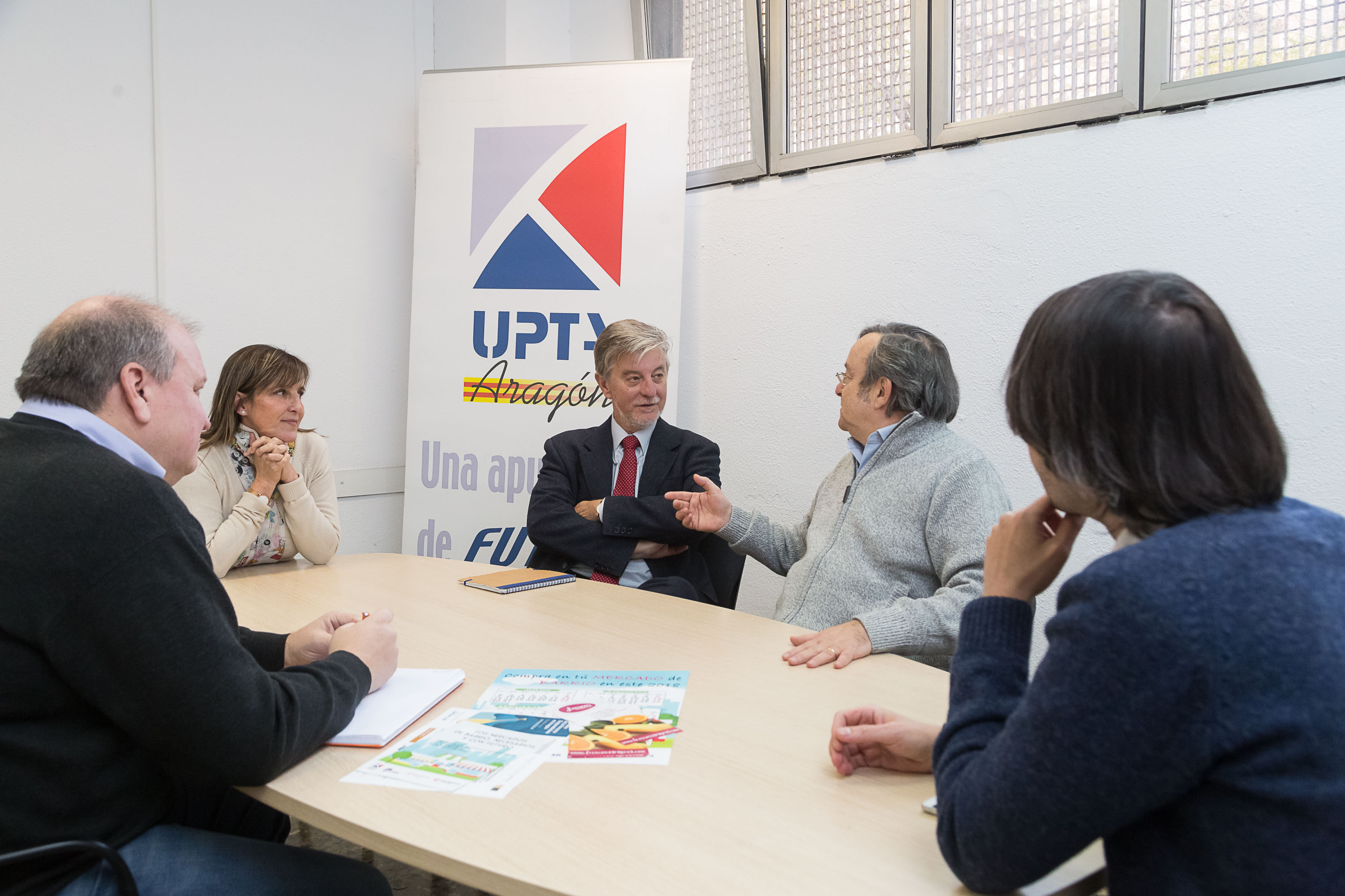 El alcalde de Zaragoza, Pedro Santisteve, ha visitado esta mañana las sedes de ECOS y UPTA, donde ha mantenido una reunión con los representantes de ambas organizaciones, acompañado de la directora general de Economía, Ana Sanromán.