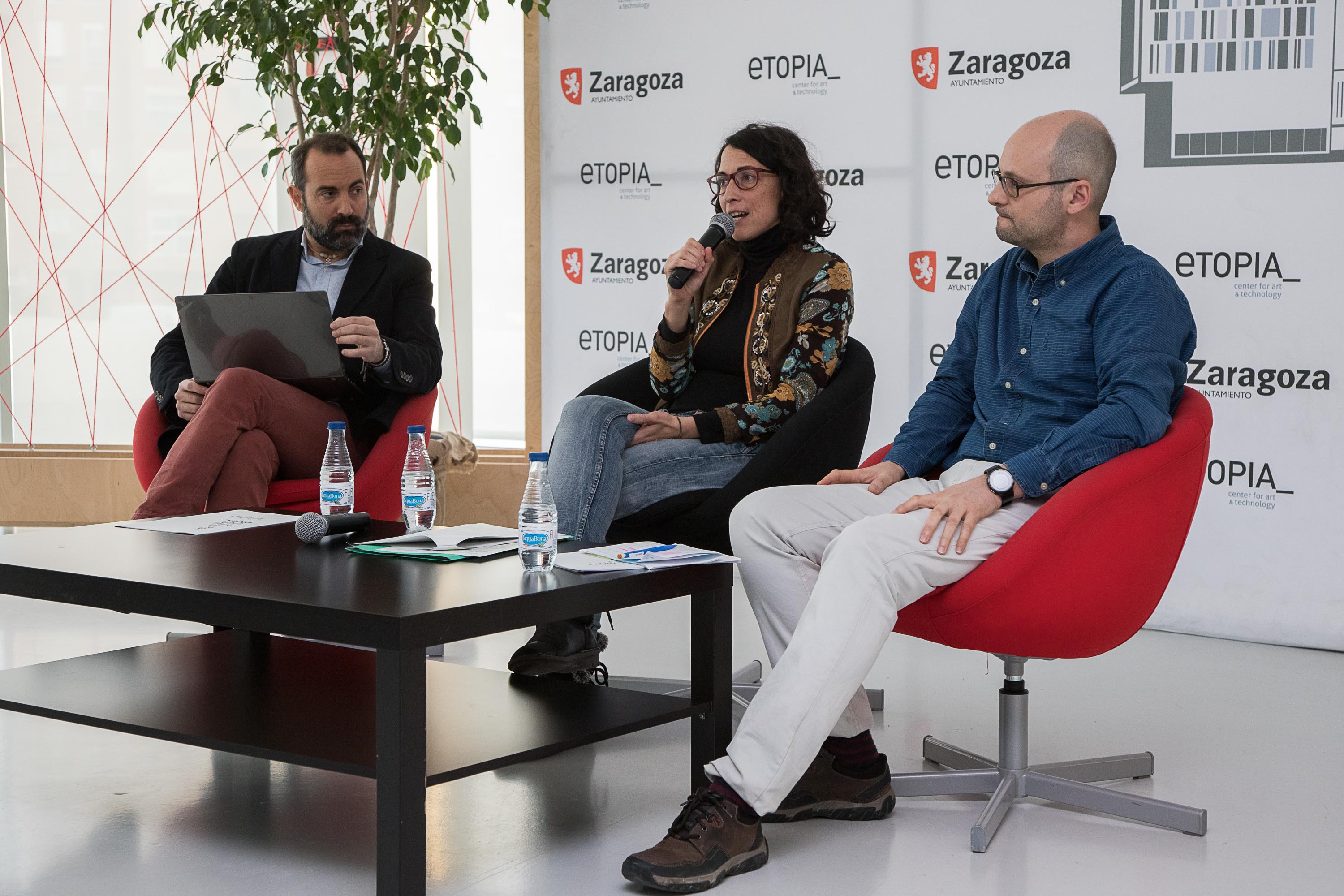 Etopia Centro de Arte y Tecnología ha presentado hoy su programación para el primer semestre de 2018 en una rueda de prensa en la que han participado la consejera de Participación, Transparencia y Gobierno Abierto del Ayuntamiento de Zaragoza Elena Giner; Gerardo Lahuerta como jefe de Servicio de Ciudad Inteligente del Ayuntamiento de Zaragoza y director de Etopia; y el director gerente de la Fundación Zaragoza Ciudad del Conocimiento Mariano Salvador.