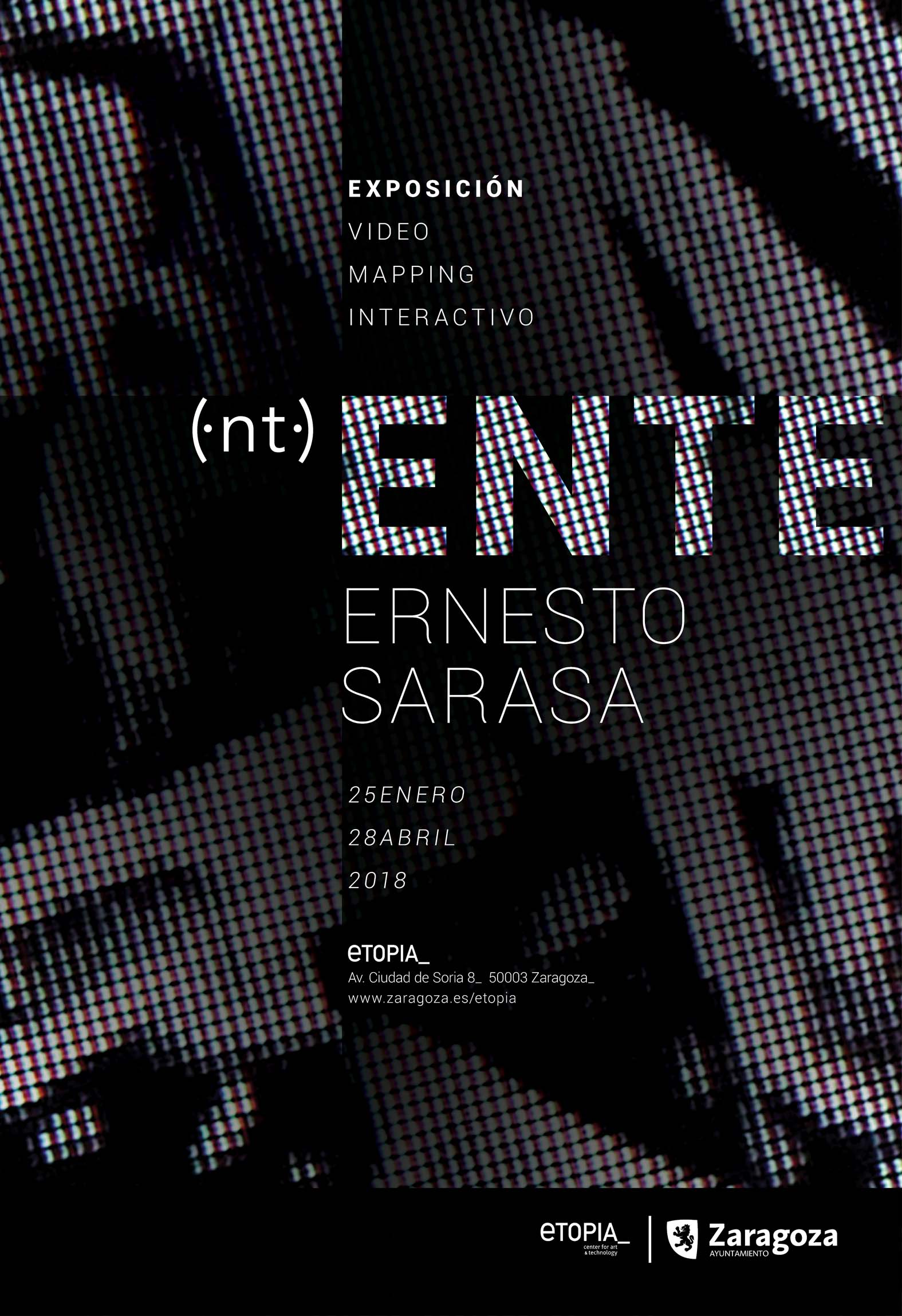 Este jueves 25 de enero, a las 19.30, Etopia inaugura Ente, una instalación de videomapping interactivo con la que Ernesto Sarasa reflexiona sobre la alienación tecnológica: "Una alegoría de nuestra relación con el medio audiovisual en la actualidad, que no sólo nos muestra imágenes y sonidos, sino que también nos observa, nos manipula y nos utiliza".