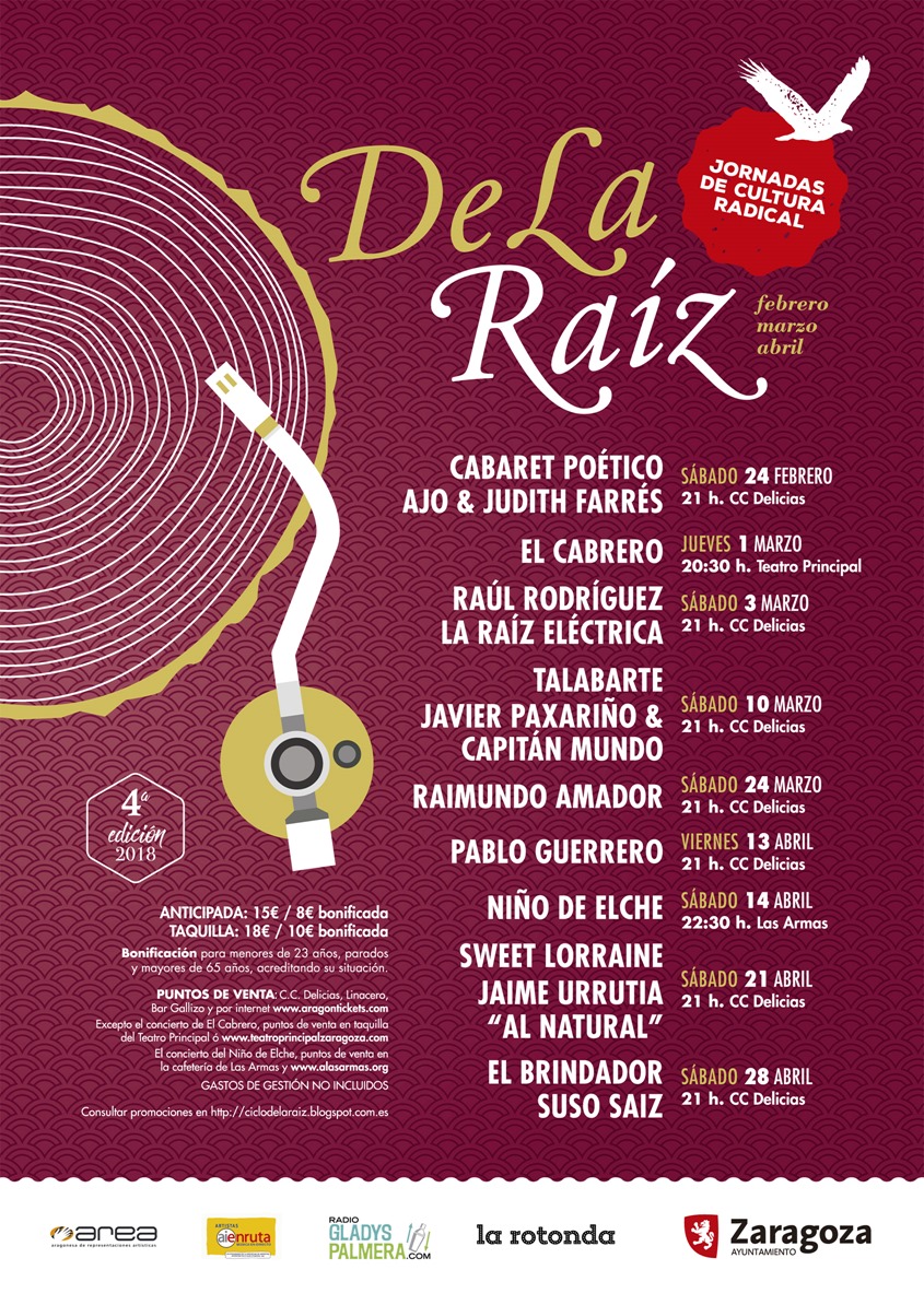 De la Raíz es un proyecto organizado por AREA (Aragonesa de Representaciones Artísticas), bajo la dirección de José Luis Cortés, con la colaboración del Ayuntamiento de Zaragoza. El ciclo ahonda en cultura slow, cultura orgánica que tiene como eje la proximidad y que huye de la anglofilia y la falta de compromiso. Para ello, cada año el ciclo ofrece la actuacuón de artistas y formas de manifestación donde lo importante es el cuidado de su música y la reivindicación de las raíces.