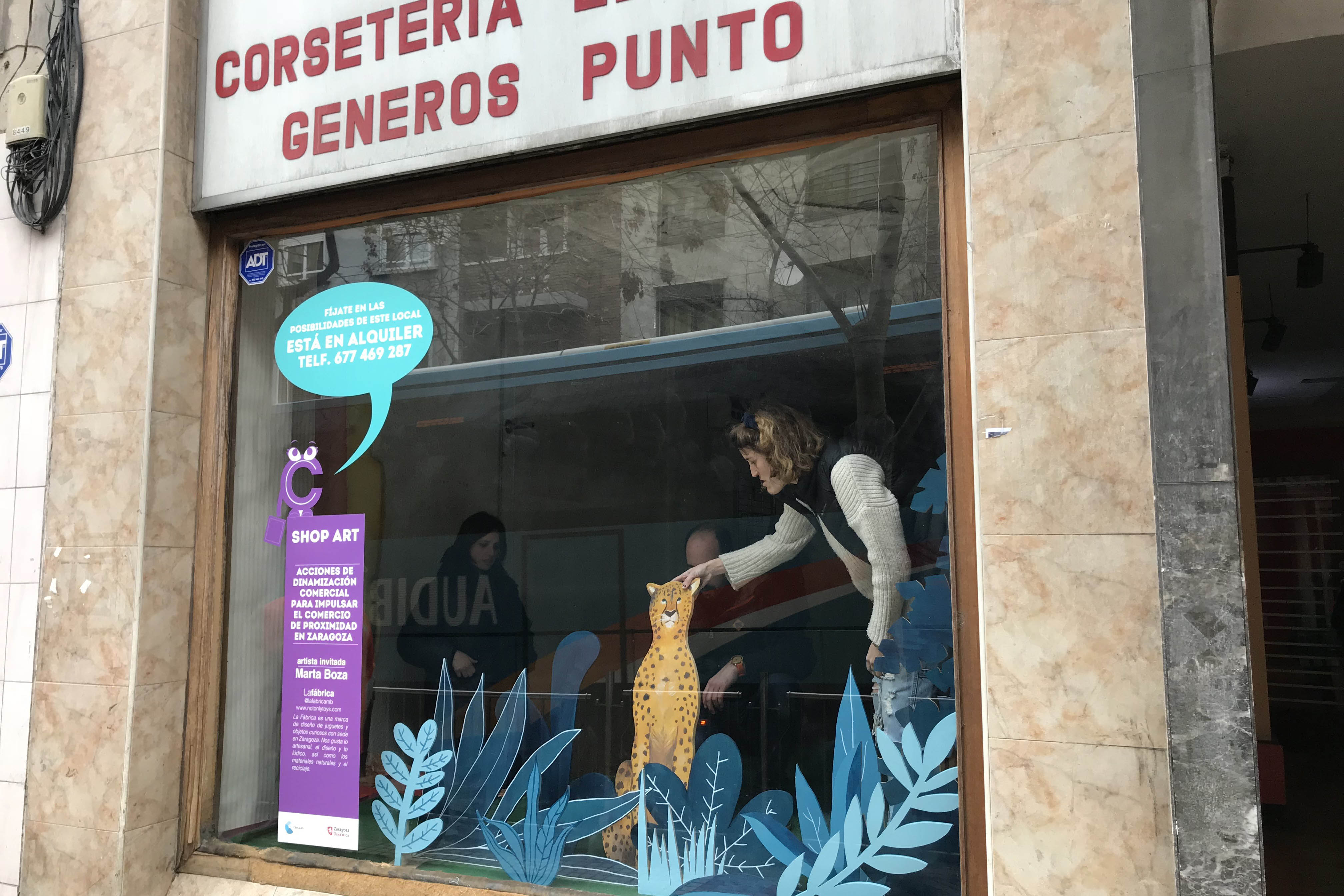 Exposiciones temporales de artistas locales para alegrar los escaparates vacíos en los barrios de Zaragoza
