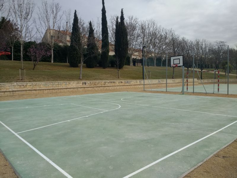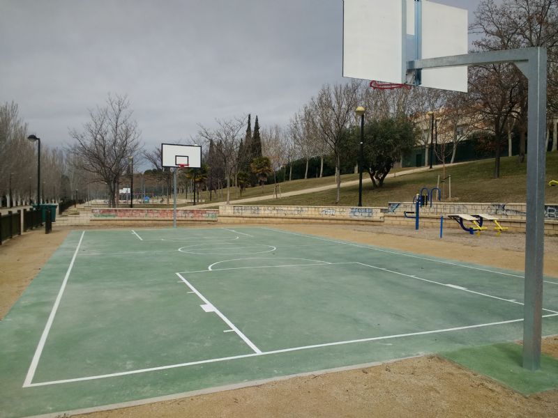 En el primero de ellos se han pavimentado las pistas de fútbol sala, baloncesto y mini-basket, con el correspondiente marcaje, se han delimitando los espacios con vallas de protección y se han colocado nuevas porterías y canastas, tanto de baloncesto como de mini-basket. En el parque Félix de Azara, se ha colocado una valla protectora detrás de cada portería.