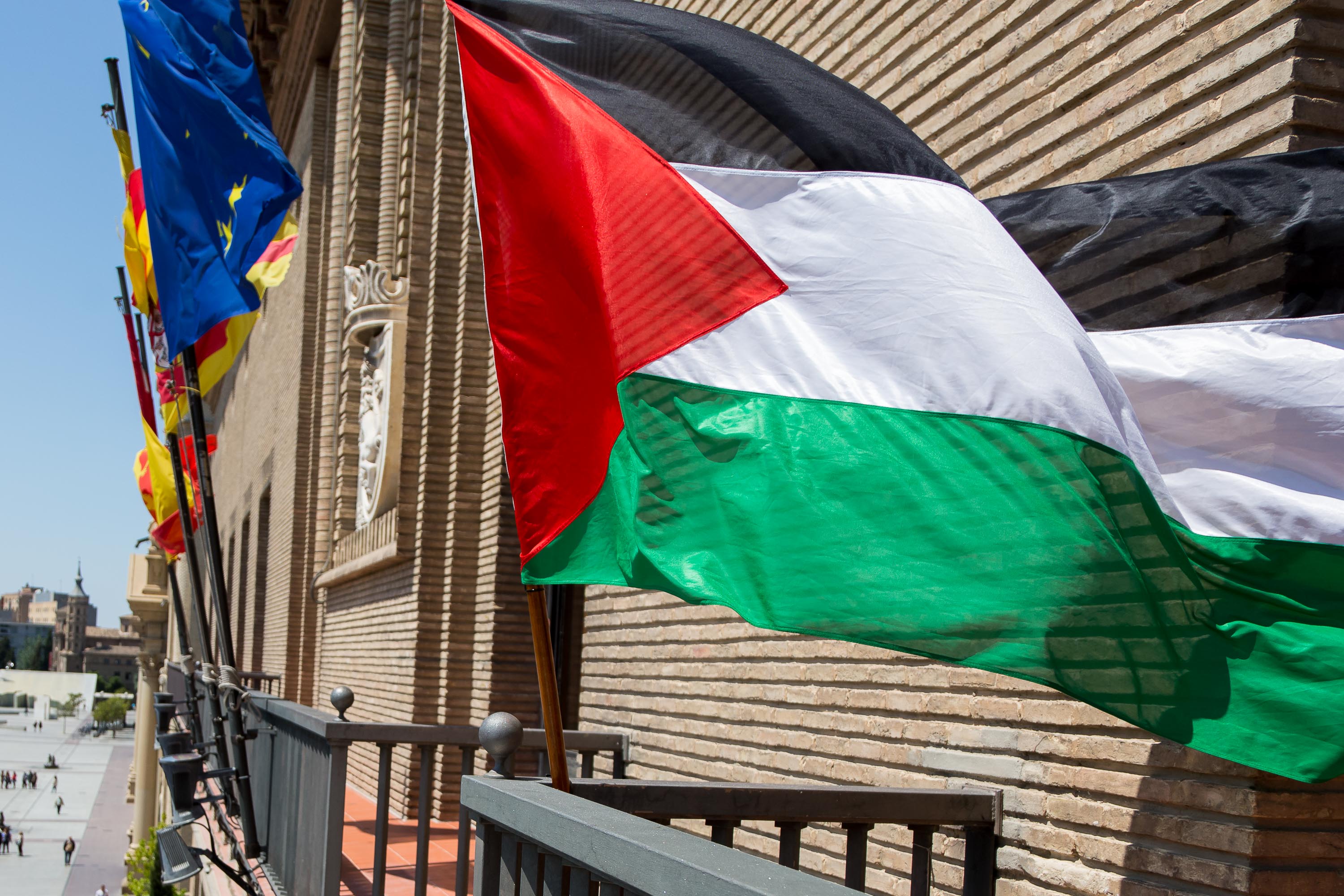 La bandera palestina ha sido colocada hoy en el balcón de la Casa Consistorial del Ayuntamiento de Zaragoza en solidaridad con el pueblo palestino; símbolo de la condena a la violencia y los ataques del ejercito israelí en la Franja de Gaza tras el traslado de la Embajada estadounidense a Jerusalén que han provocado la muerte de al menos 60 personas y herido a más de 2.700.