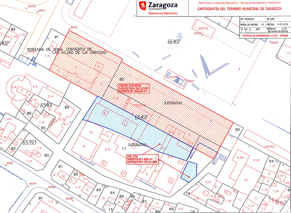 Como se recordará, el Gobierno de Zaragoza acordó el 12 de febrero de 2016 instar al Gobierno de Aragón el inicio del procedimiento de reversión de una parte de los terrenos de los Juzgados, que en su día fueron cedidos al Ministerio de Justicia por el Ayuntamiento de Zaragoza para posibilitar que en ellos se instalaran los juzgados de la ciudad. Esta cesión, con carácter gratuito, se materializó en dos acuerdos: el primero de ellos adoptado en 1956, en el que se cedió una finca de 1.966,69 metros cuadrados; y el segundo en 1986, en el que se acordó ceder, para la ampliación del edificio, dos porciones de terreno: una de 905 metros cuadrados y otra de 125 metros cuadrados, en la zona recayente a las calles Danzas, La Virgen y Convertidos.