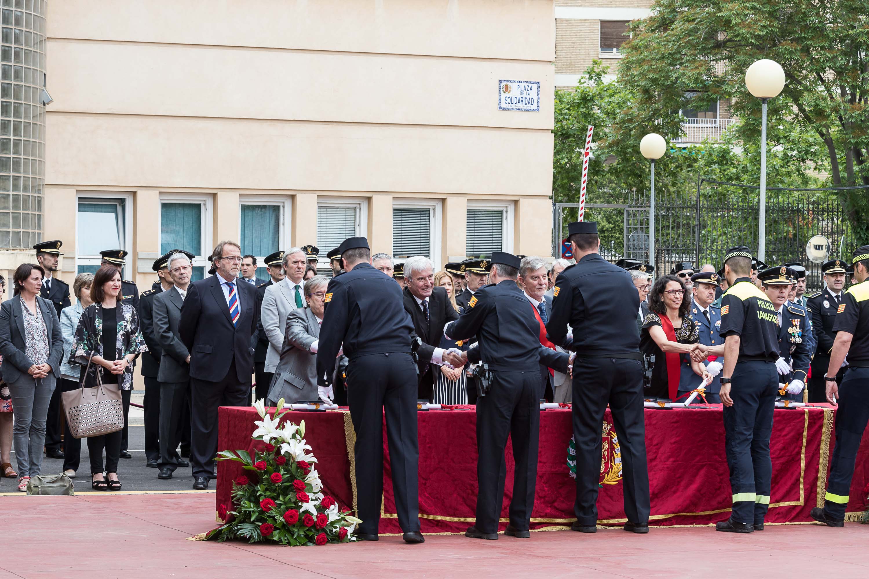 La Policía Local de Zaragoza ha celebrado esta mañana, en el Patio de la Solidaridad del Cuartel de Palafox, el día de su Patrona, la Virgen del Portillo. El acto ha sido presidido por el Alcalde de Zaragoza, Pedro Santisteve, y la concejala delegada de la Policía Local, Elena Giner. Al mismo han asistido representantes de los grupos políticos municipales, así como el Delegado del Gobierno en Aragón, el Justicia, autoridades militares y civiles y miembros de distintos cuerpos de seguridad del Estado.