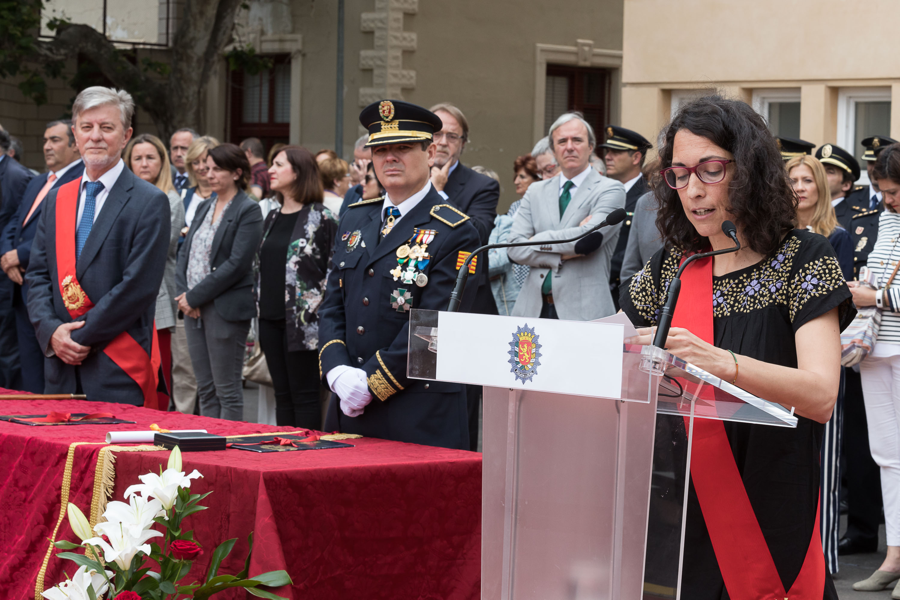 Giner ha puesto en valor el trabajo cotidiano que realiza la Policía Local, "una labor construida sobre la base de la profesionalidad y la vocación de atención, de cuidado y de protección que, a su vez, las claves sobre las que la Policía Local de Zaragoza cimenta y consolida su prestigio".