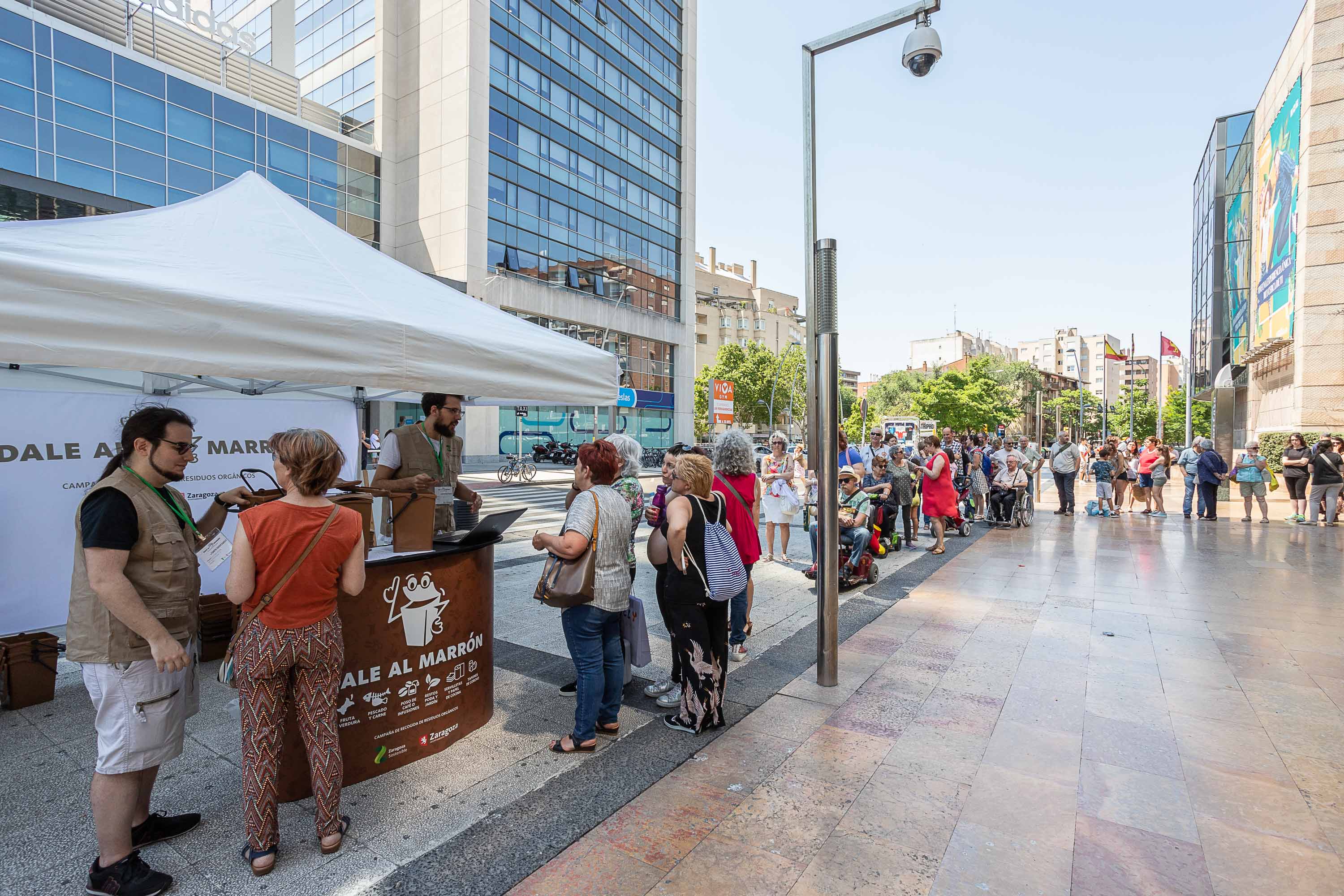 El pasado viernes comenzó la campaña informativa de la prueba piloto de recogida selectiva de materia orgánica en el ACTUR. Cientos de vecinas y vecinos acudieron a uno de los dos puntos informativos a recoger su kit de bienvenida, formado por la llave que abre el quinto contenedor, un cubo de 10 litros, un folleto informativo y un imán para la nevera en el que se detallan qué tipo de residuos se pueden tirar al contenedor marrón. Las filas que se formaron en estos puntos el viernes por la mañana anunciaban la buena acogida que esta prueba piloto parece que va a tener en este barrio de la margen izquierda.