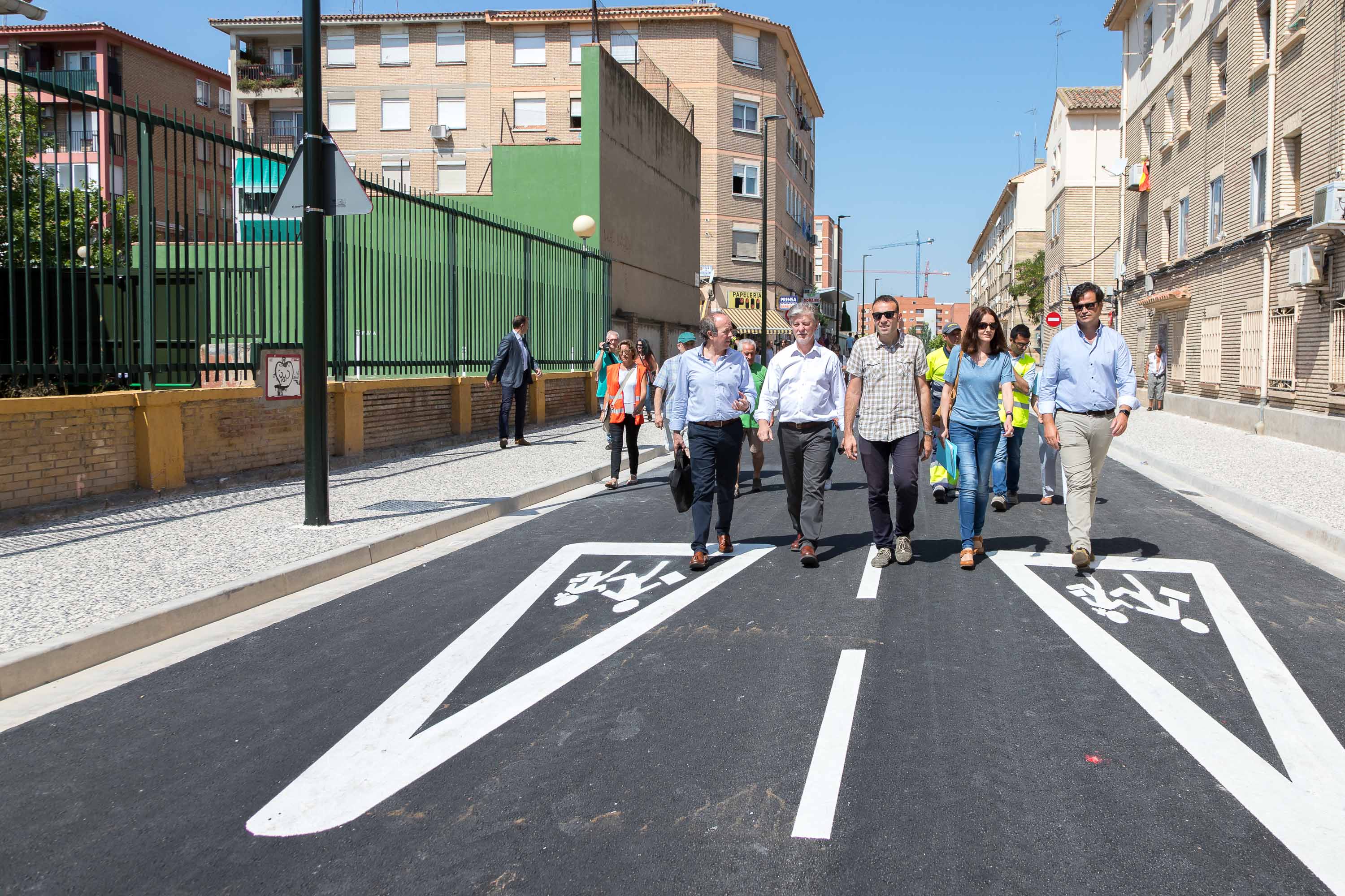 El alcalde de Zaragoza, Pedro Santisteve, acompañado del consejero de Urbanismo y Sostenibilidad, Pablo Muñoz, y de la concejala de Participación, Transparencia y Gobierno Abierto, Elena Giner, han visitado esta mañana el tramo remodelado de la calle Antonio Leyva, que supondrán una mejora muy importante en la calidad de vida de sus habitantes.