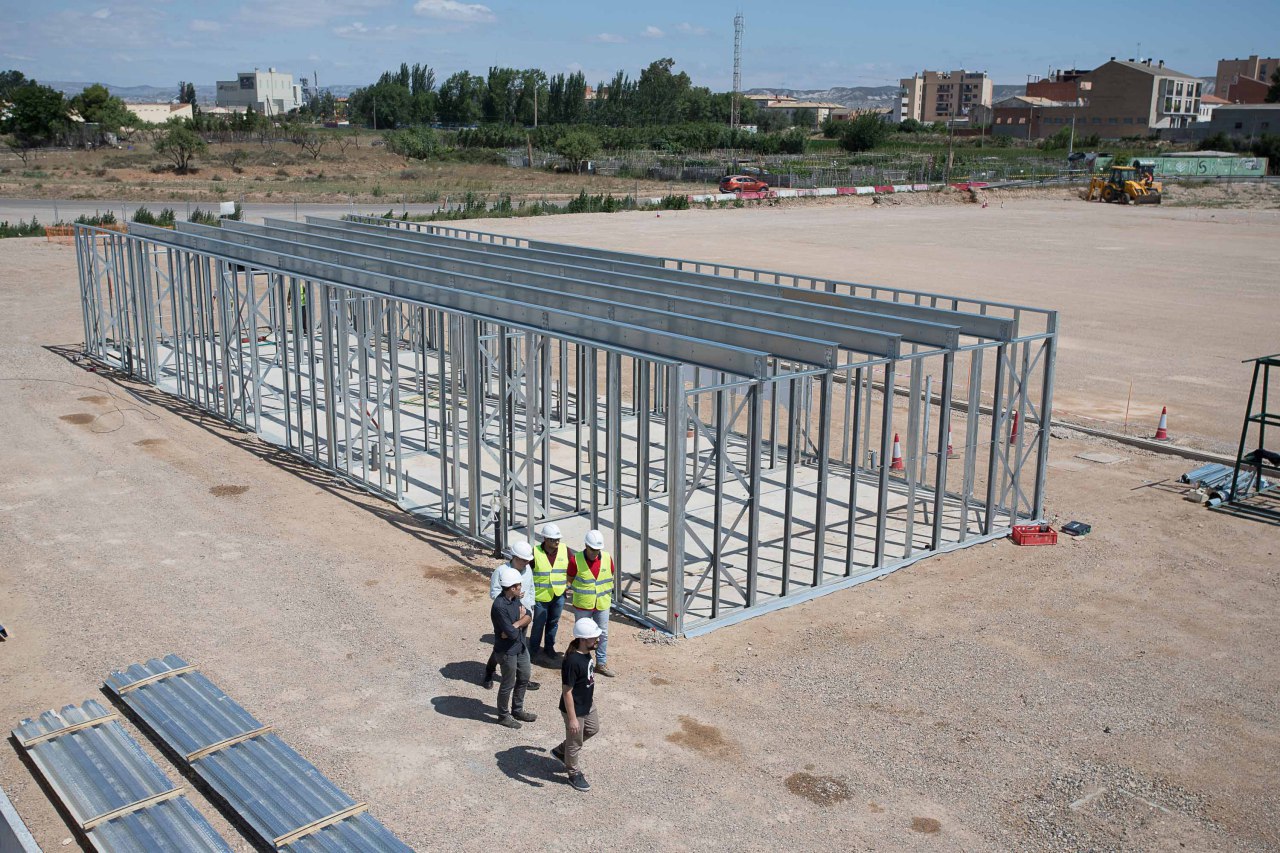 Las obras del nuevo Campo Municipal de Fútbol de Casetas avanzan con la instalación de una innovadora estructura para el edificio de vestuarios