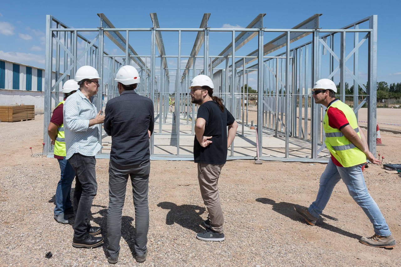 Las obra del nuevo Campo Municipal de Fútbol de Casetas avanzan a buen ritmo, con el horizonte de ser inaugurado en el mes de octubre. El concejal de Vivienda y Deporte, Pablo Híjar, y el consejero de Urbanismo, Pablo Muñoz, han realizado hoy una visita junto al arquitecto municipal José Javier Gallardo y el presidente de la UD Casetas, Cecilio García, en la que han conocido en detalle la nueva estructura del edificio de vestuarios que se acaba de instalar.