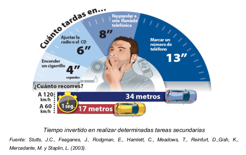 Se produce distracción en la conducción cuando algún suceso, actividad, objeto o persona, dentro o fuera del vehículo, captan la atención del conductor y la desvían de la tarea de conducir. Cuanto mayor es la velocidad del vehículo, menor margen de reacción tiene el conductor frente a los imprevistos y más conveniente resulta que se concentre totalmente en la tarea de conducir y trate de evitar las posibles distracciones.