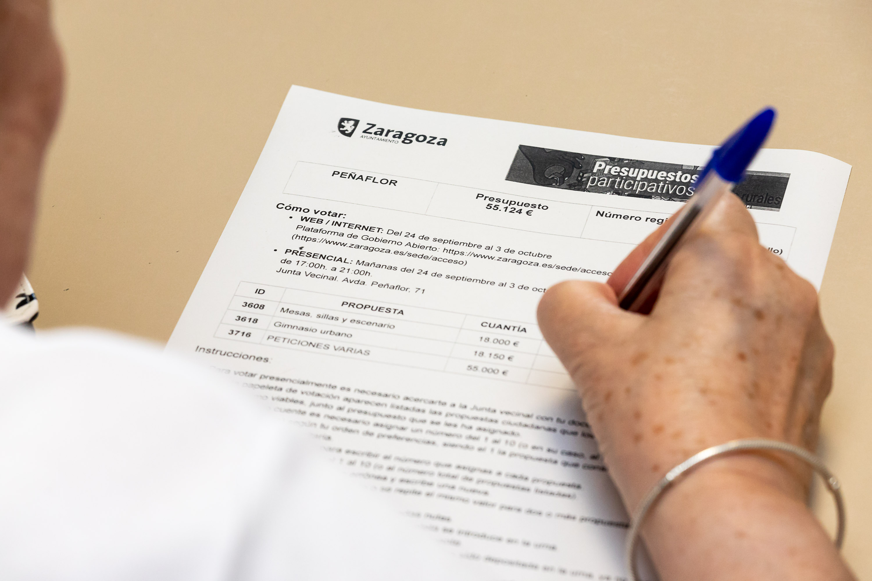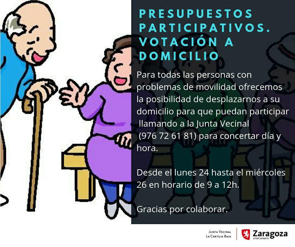 Los vecinos y vecinas de los barrios rurales de Zaragoza están desde hoy convocados a participar en la votación de sus Presupuestos Participativos 2018. Es la primera vez que este proceso se celebra de manera generalizada en todos los barrios, en los que se decidirá el destino global de inversiones y mejoras por valor de un millón de euros. Tienen derecho a voto (empadronados en los barrios y mayores de 14 años) un total de 27.375 vecinos y vecinas.