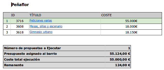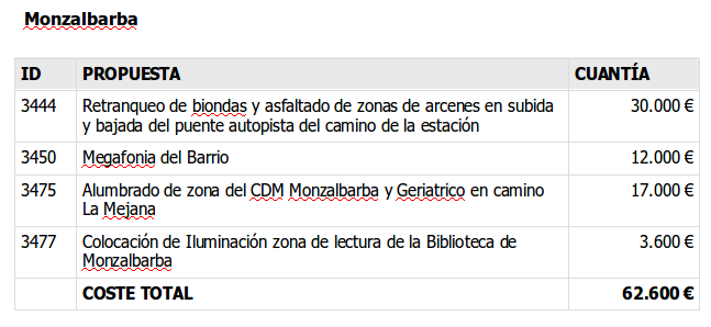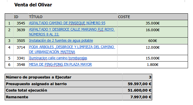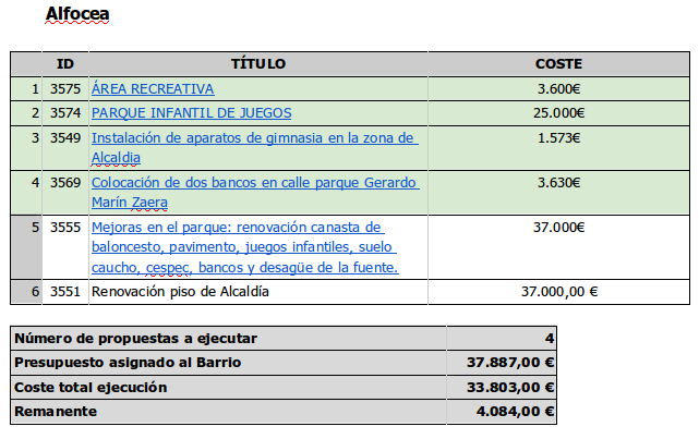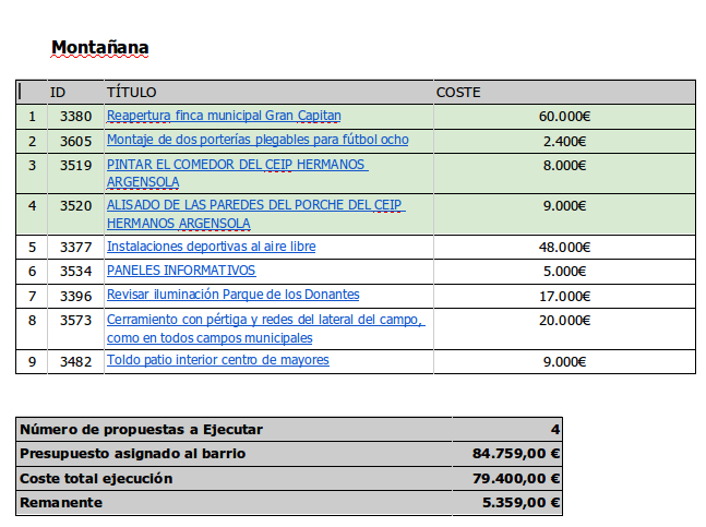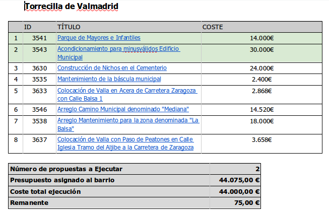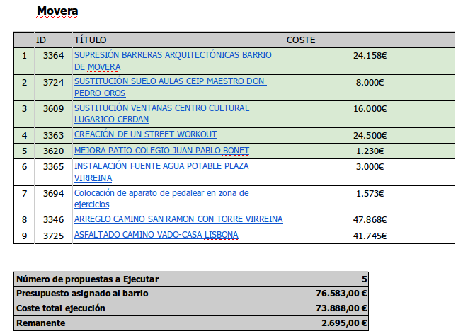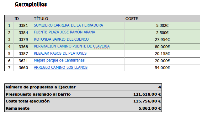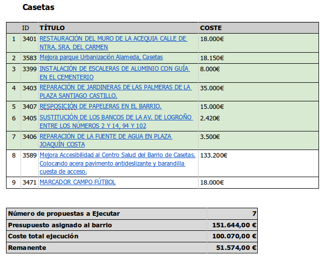 Además, en los barrios en los que no se ha celebrado votación, los proyectos a realizar son los siguientes: