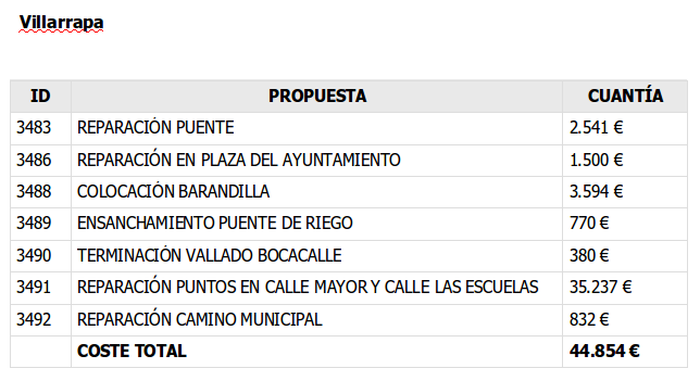 Las votaciones de los Presupuestos Participativos en los Barrios Rurales dan luz verde a la realización de casi 60 obras de mejora