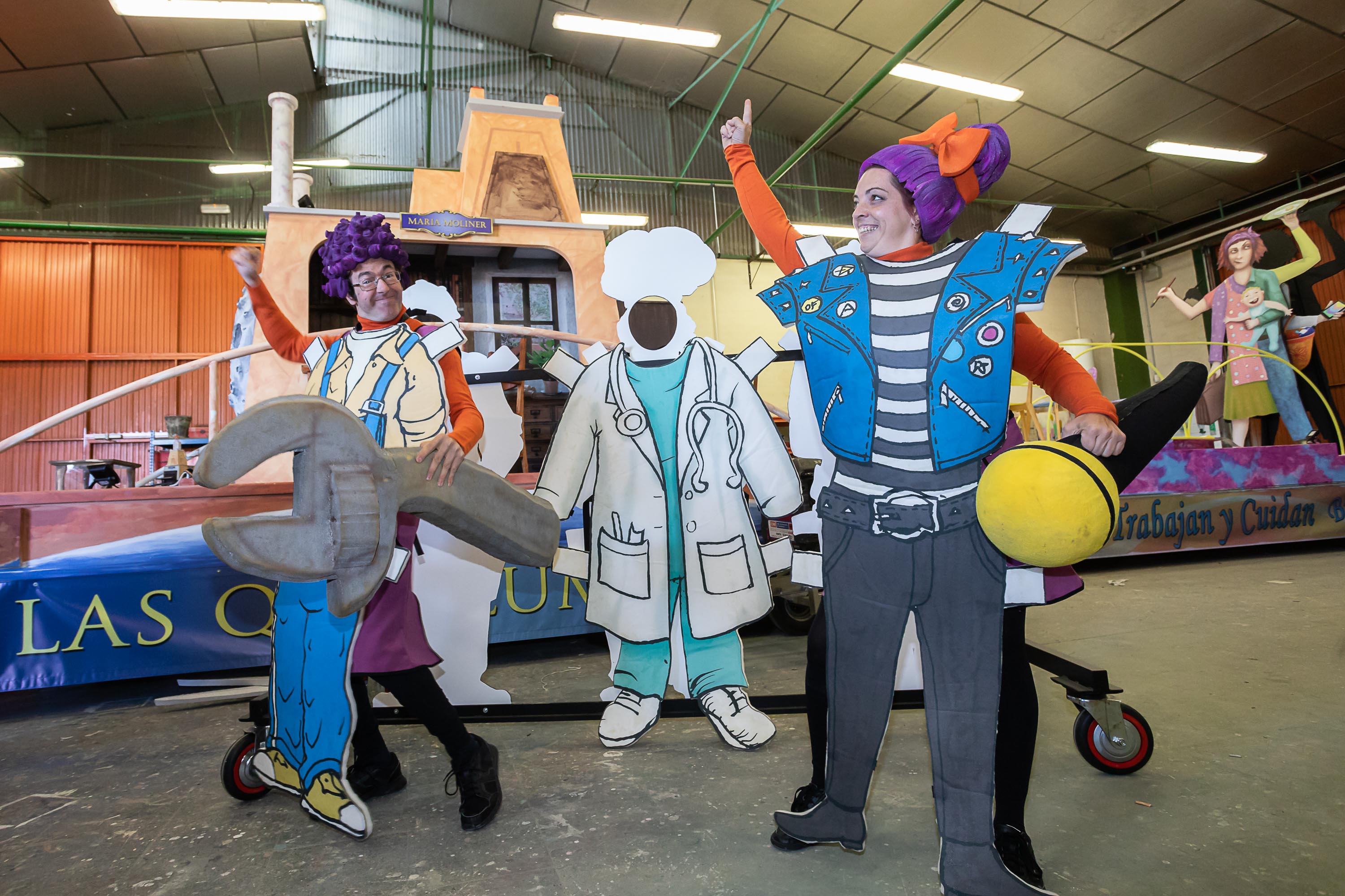 - 'Las que trabajan y cuidan... Brazos y abrazos': una carroza con iconos de mujer trabajadora que, como una araña, intenta llegar a todo con sus mil brazos: casa, trabajo, crianza...