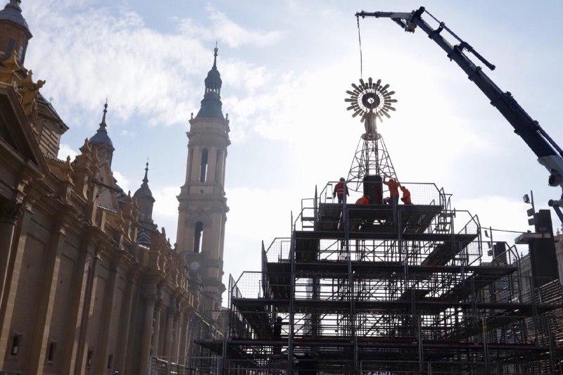 Todo preparado para la Ofrenda de Flores del día grande de las Fiestas del Pilar