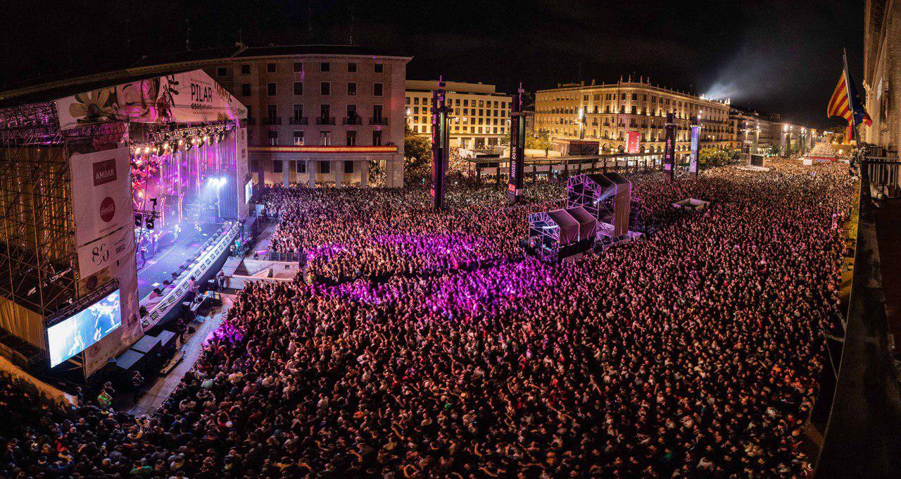 La programación musical es un importante reclamo de público durante las fiestas. Los conciertos musicales celebrados en los grandes recintos han congregado, hasta estos momentos, a casi 344.000 personas, resaltando la gran actuación de ayer en la Plaza del Pilar del zaragozano Kase O, en la que 98.000 personas pudieron disfrutar de las letras de este gran artista, o el concierto del primer día de las fiestas a cargo de Chenoa, que contó con 50.000 personas.