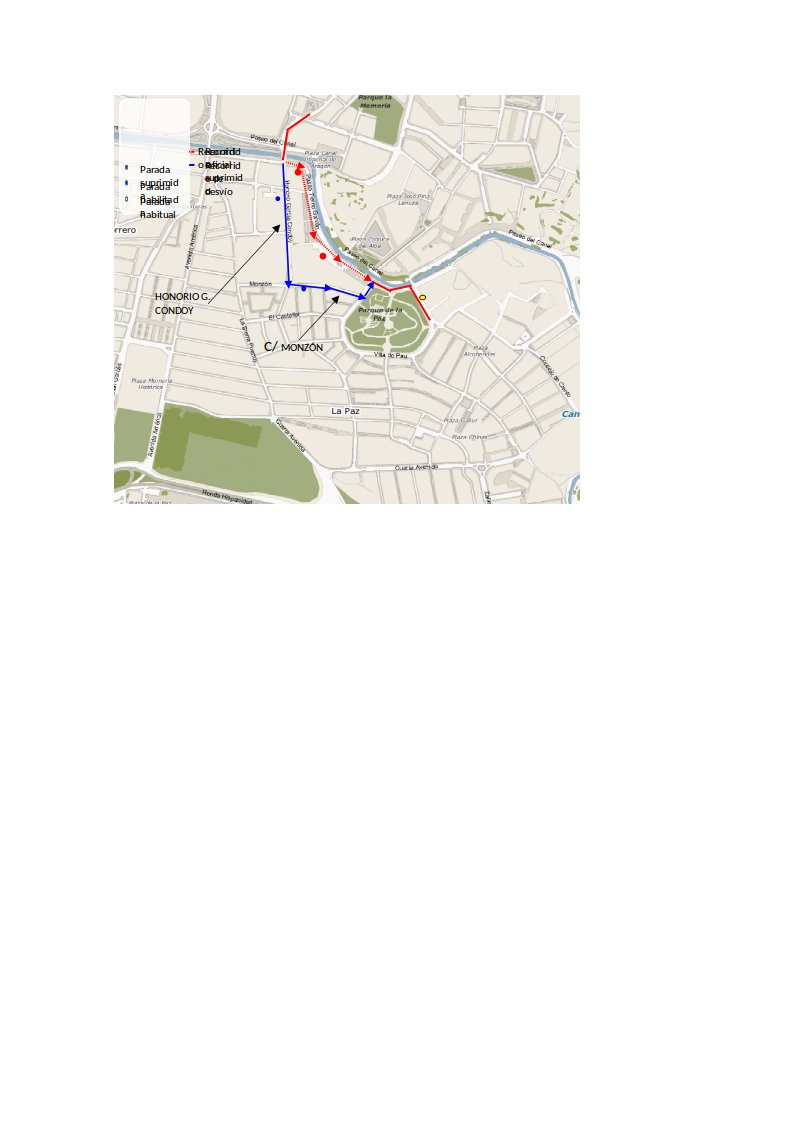 Con el objeto de realizar el desvío del bus urbano, por las Calles Honorio García Condoy y Calle Monzón, será necesario prohibir el estacionamiento en un tramo de Honorio García Condoy (entre el paso de peatones y el N.º 8) y en todo el lado derecho de la calle Monzón, entre las calles Honorio García Condoy y Rotonda Villa de Pau.