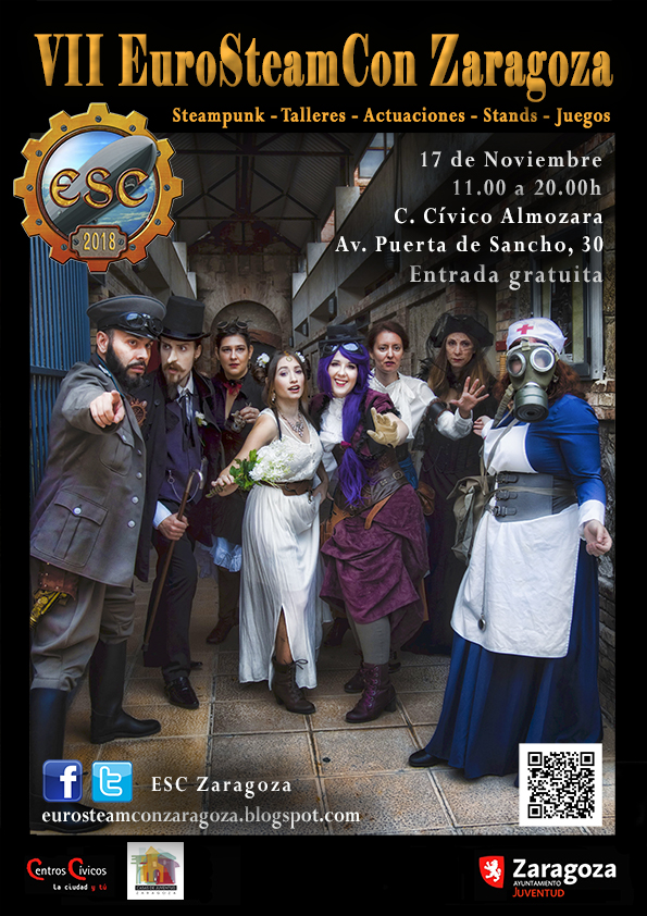 Engranajes, máquinas de vapor, gafas de pilotar o 'goggles' serán integrantes del escenario que se presentará este sábado, a lo largo de todo el día, en el Centro Cívico Almozara (Avenida Puerta Sancho, 30). Las casas de juventud de Actur, Casablanca, Juslibol, Santa Isabel, San José, San Gregorio y La Jota organizan el evento, que espera reunir a personas interesadas en este peculiar y atractivo tema, tanto de Zaragoza como visitantes de otros municipios, así como editoriales del sector y otras iniciativas ciudadanas.