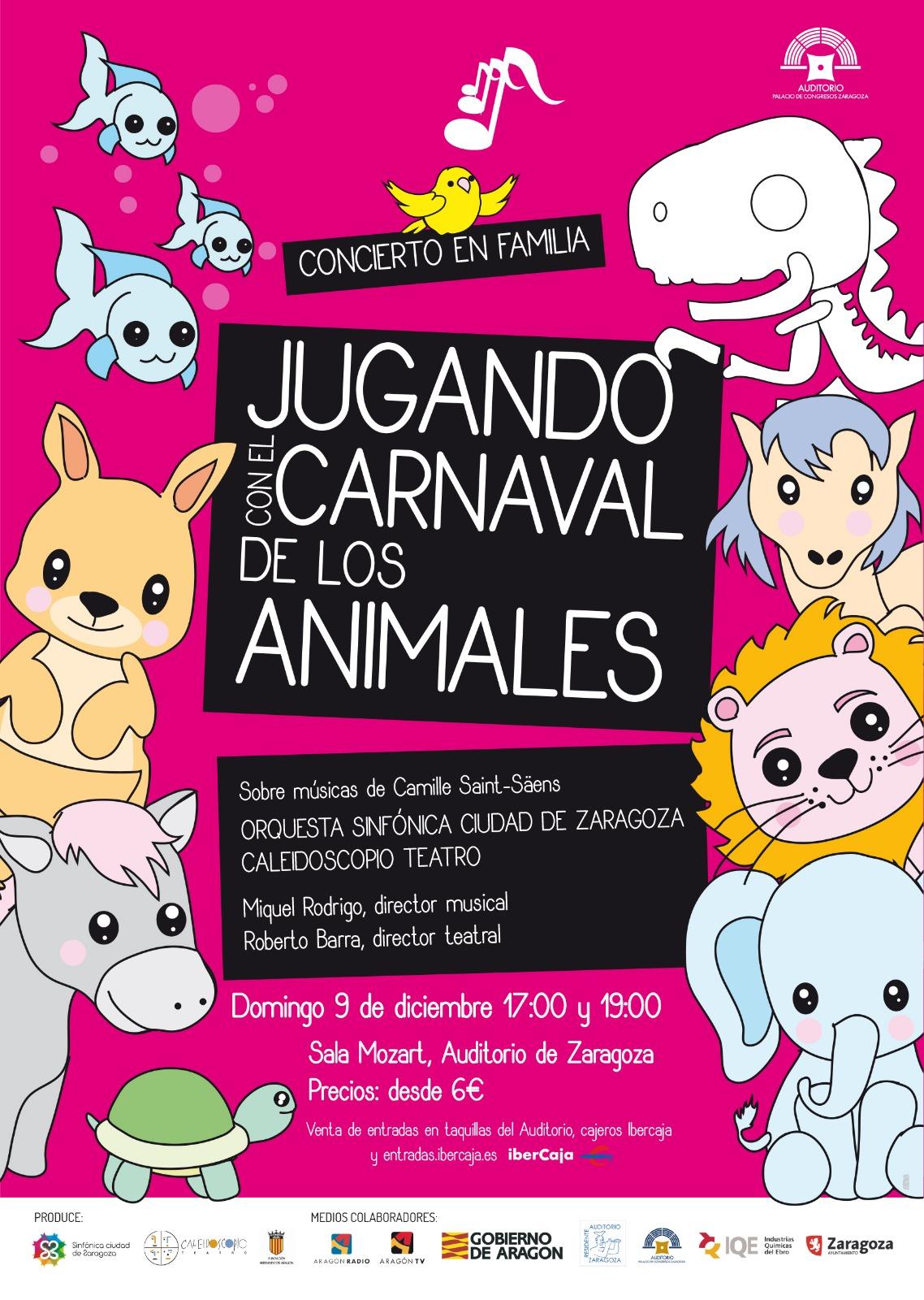 La Sinfónica Ciudad de Zaragoza, orquesta residente en el Auditorio de Zaragoza, y la compañía aragonesa Caleidoscopio Teatro vuelven a unirse para ofrecer el próximo 9 de diciembre el concierto en familia "Jugando con el carnaval de los animales", un proyecto que junta música y teatro en una propuesta de acercamiento a las artes escénicas de accesibilidad universal.