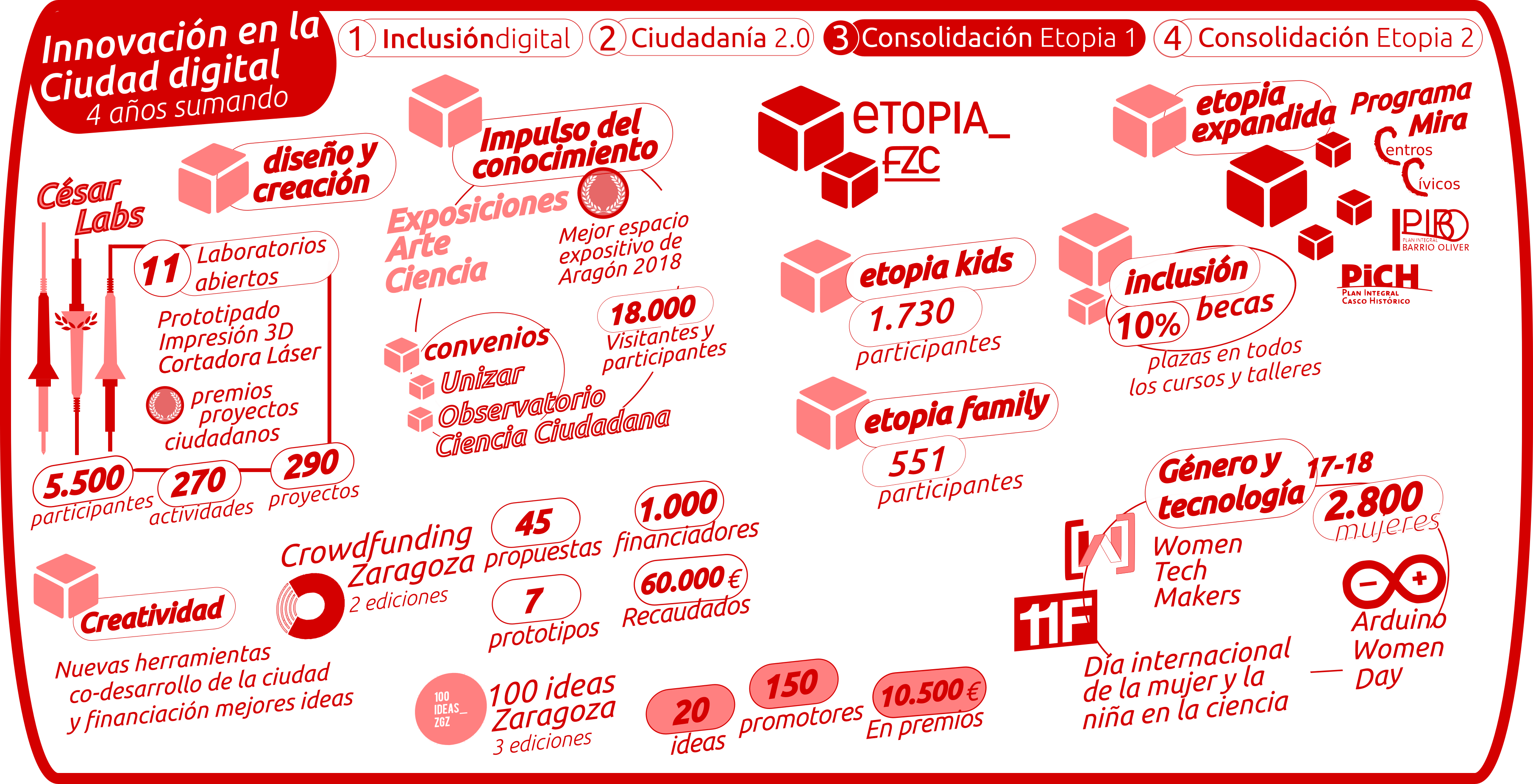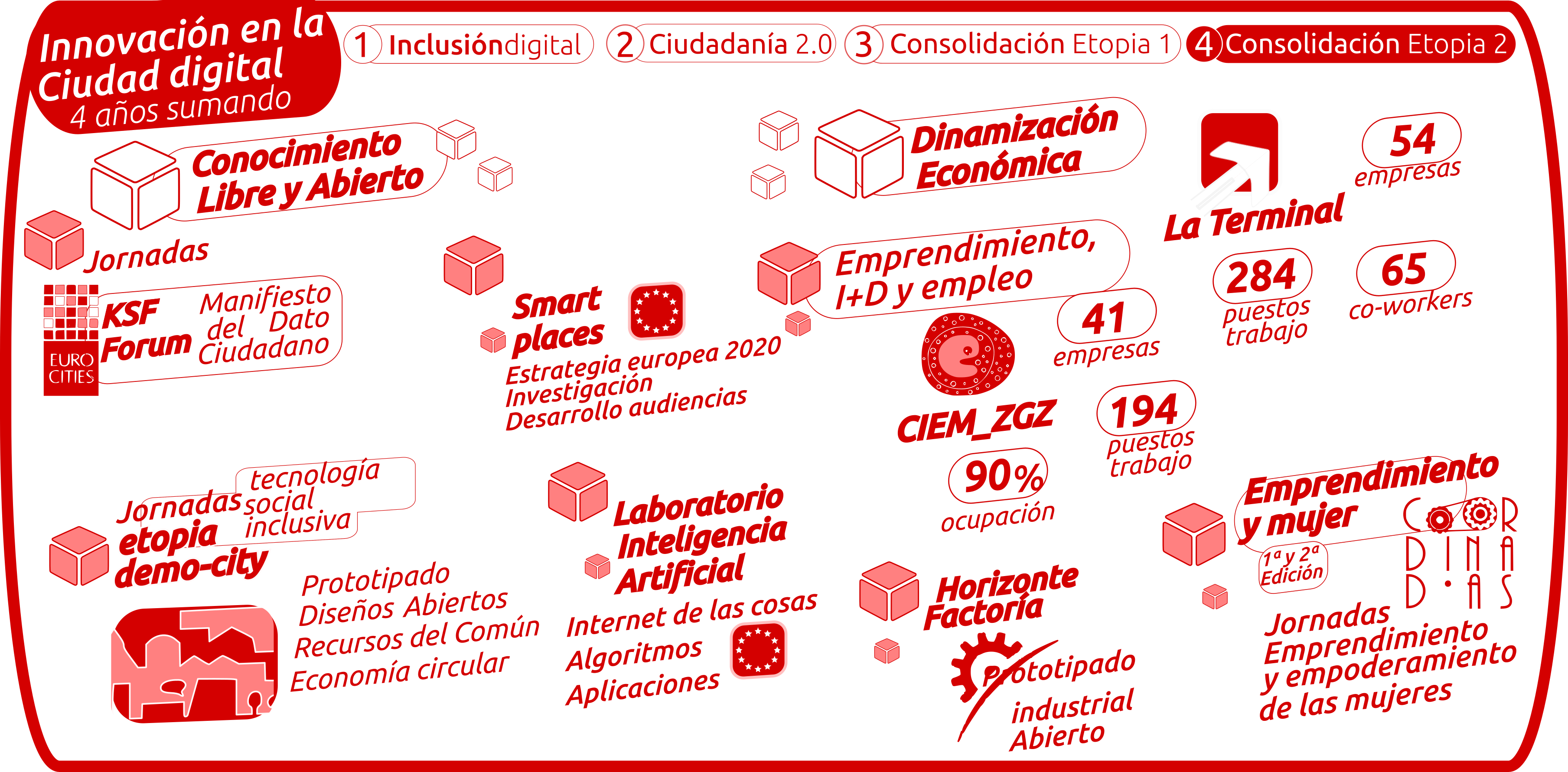 El refuerzo de funciones en la Tarjeta Ciudadana -que ahora permite, por ejemplo, a los menores de 8 años viajar sin coste en autobús y tranvía-; la creación de la Tarjeta Lazo; la extensión del uso de software libre; o la apuesta por la ciencia ciudadana son sólo algunas de las líneas de trabajo llevadas a cabo a lo largo de estos años de gestión.