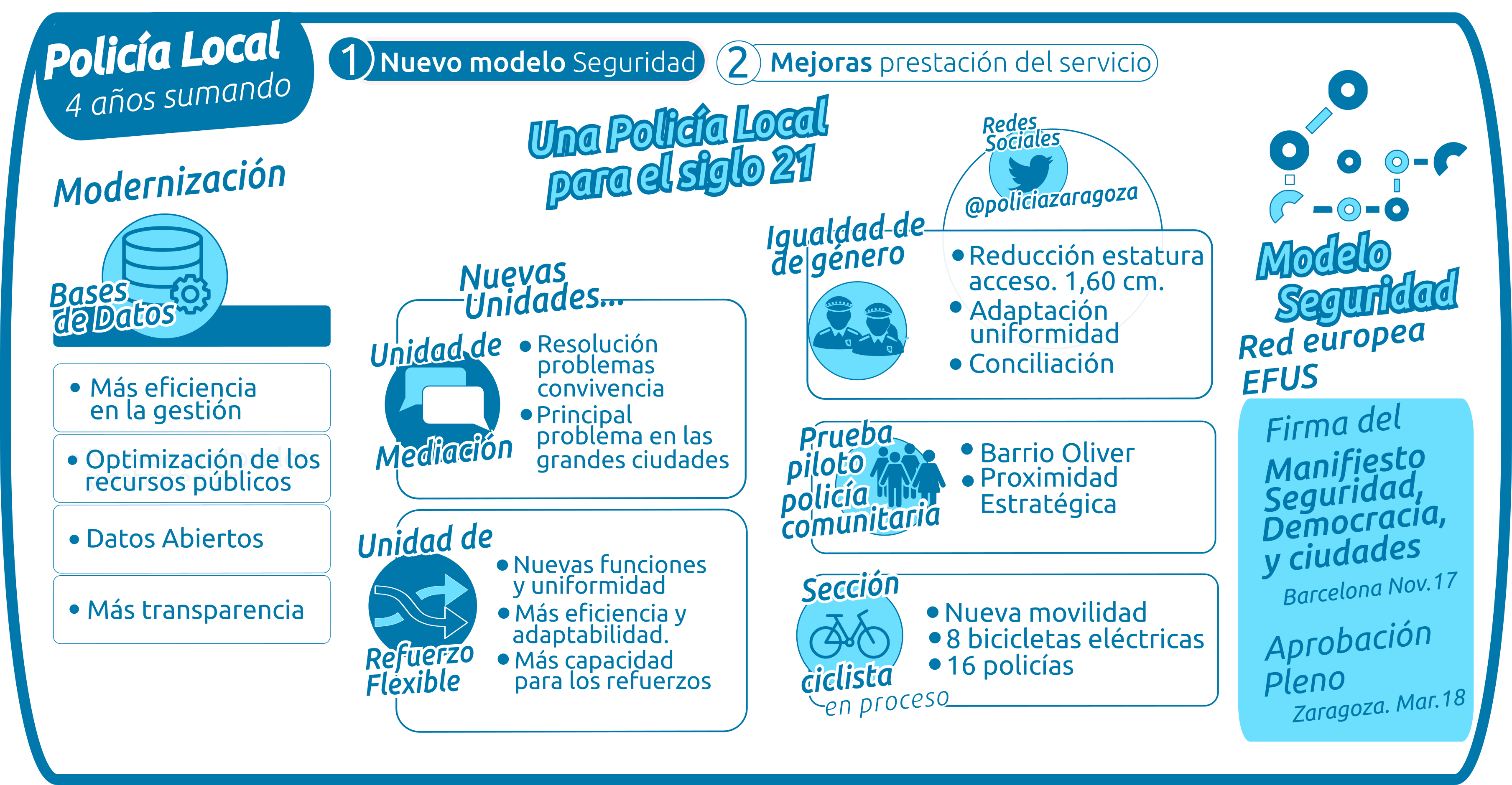 Todas las tareas realizadas, tanto en el ámbito de la Participación como de la Policía Local, han tenido un hilo común y no siempre explícito: el enfoque feminista, la mirada de género, que ha marcado la actualidad de nuestro país a lo largo de estos años. Nada se puede entender sin esa visión que recorre todas las gestiones públicas de manera transversal. Esa mirada ha estado presente en las actividades de emprendimiento promovidas desde el Área; en el propio Salón del Cómic, repleto de autoras de dentro y fuera de Aragón; en las acciones llevadas a cabo en espacios de encuentro como el Plan Integral de Barrio de Oliver; y, cómo no, en la Policía Local, cuerpo que, desde hace unos meses, tiene por fin rebajada la estatura mínima exigida para poder acceder al mismo.