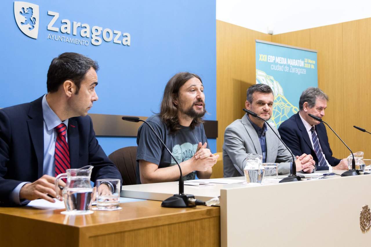 La prueba, organizada por Running Zaragoza, ha sido presentada hoy en el Ayuntamiento de Zaragoza, con la presencia del concejal de Vivienda y Deporte, Pablo Híjar, el director de la carrera, David Constante, el responsable de ventas de la empresa patrocinadora EDP, Roberto Oriol, y el jefe de patrocinios de Ibercaja, Fernando Arcega.