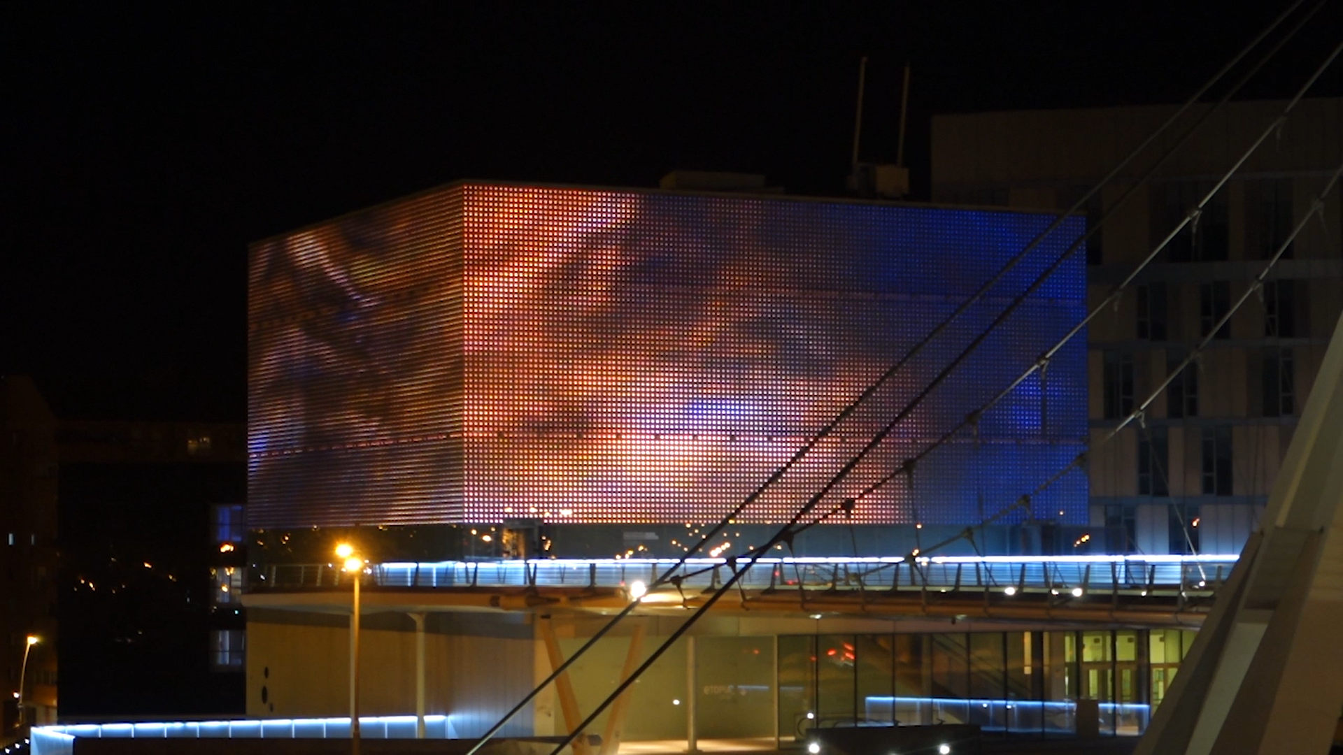 Así, a partir de esta semana, Etopia se iluminará diariamente al caer el sol para ofrecer un espectáculo visual que podrá ser contemplado en el skyline de la zona oeste de Zaragoza, y en el que los 16.884 leds que conforman su fachada digital se pondrán al servicio de las obras desarrolladas para tal fin.