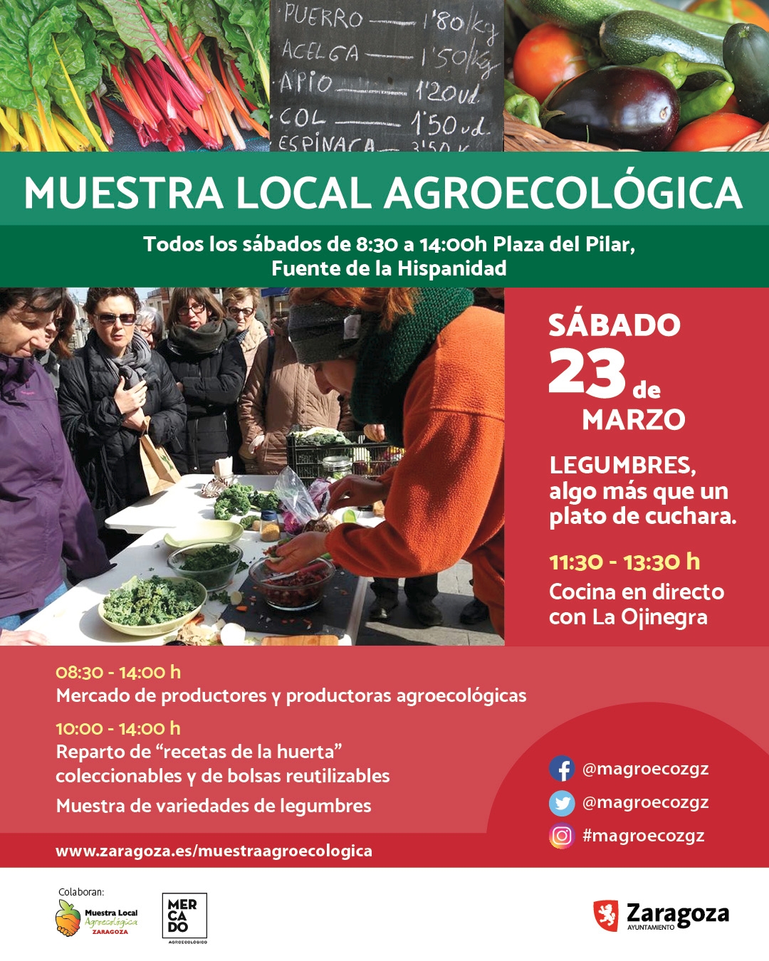 La Muestra Agroecológica de Zaragoza es una referencia a nivel estatal, una cita semanal donde poder comprar directamente a más de 20 agricultoras y agricultores alimentos sanos y certificados en producción ecológica. Pero además, es un espacio para el encuentro y el apoyo a un modelo de producción y alimentación que cuida nuestra salud, la del medio ambiente y también con precios justos para las personas que producen los alimentos.