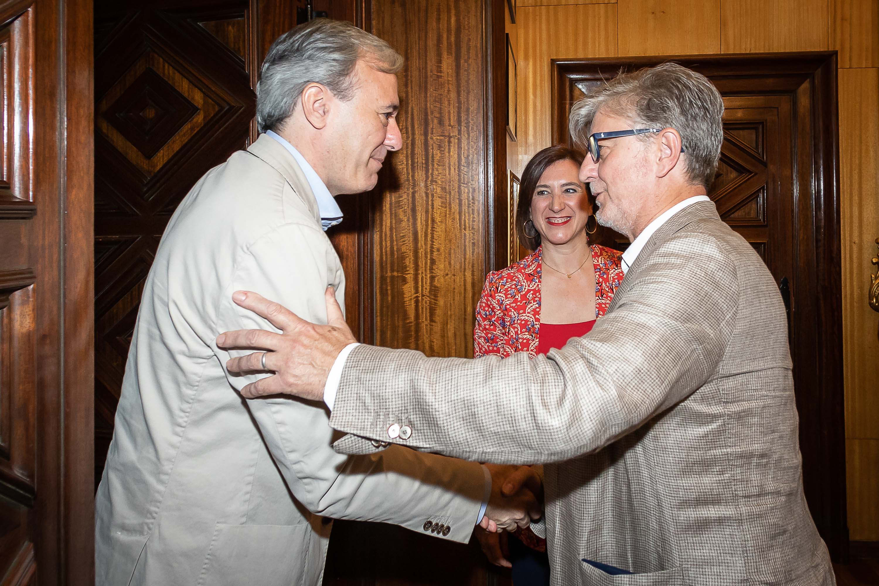 Posteriormente, el alcalde de Zaragoza, Jorge Azcón, ha recibido en su despacho al presidente del Partido Popular de Aragón, Luis María Beamonte, iniciando así una serie de encuentros con diferentes líderes políticos y sociales.